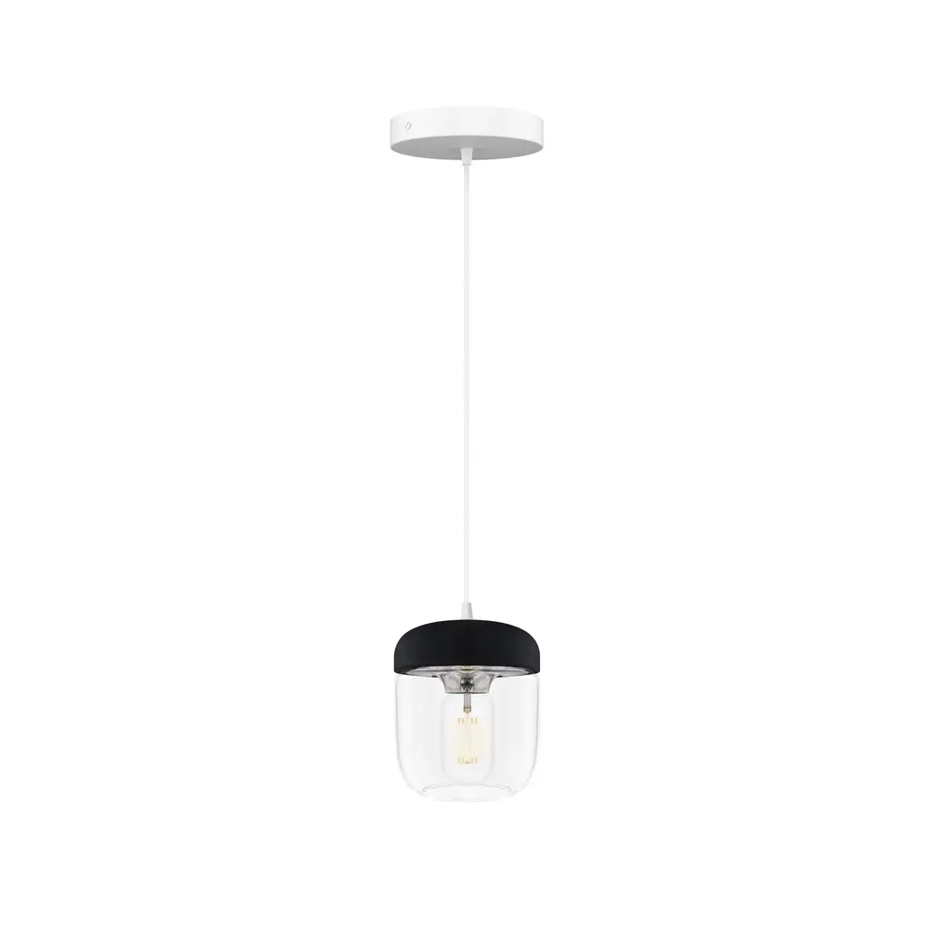 A walk in an oak forest inspired Danish designer Jacob Rudeck's charming Acorn Pendant. A clear glass shade provides a brilliant reflected light that varies in tone depending on the metallic finish inside the domed matte silicone cap. From Copenhagen-based Umage, the diminutive Acorn can be placed on its own in a cozy spot or arrayed in a group to illuminate larger spaces.