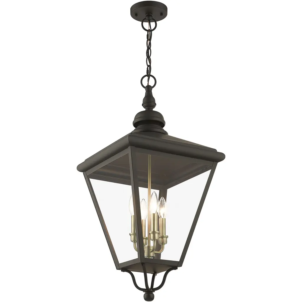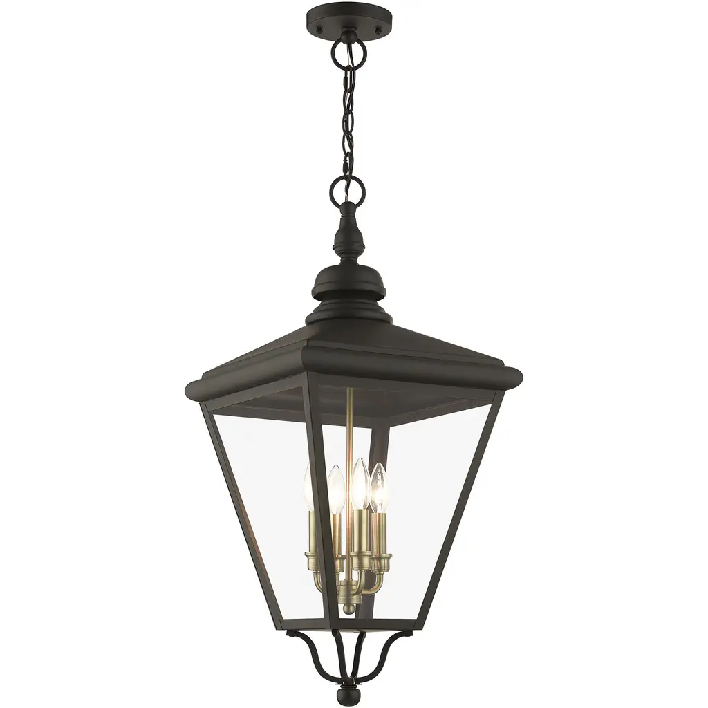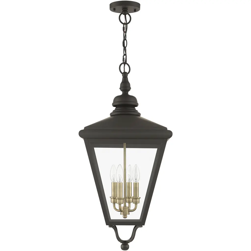 4 Light Bronze Outdoor Extra Large Pendant Lantern with Antique Brass Finish Cluster