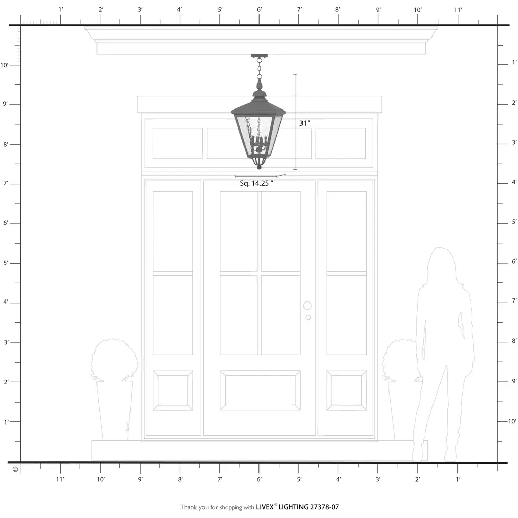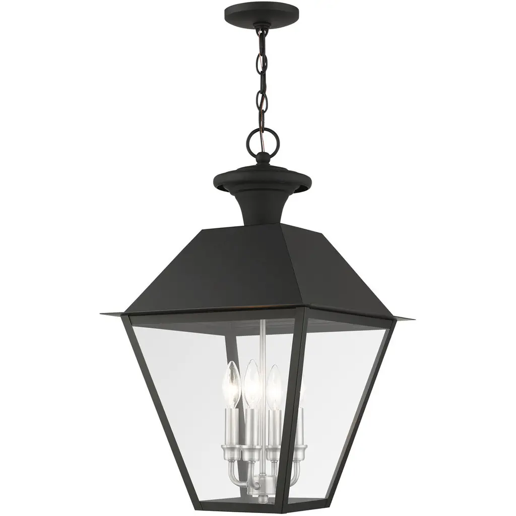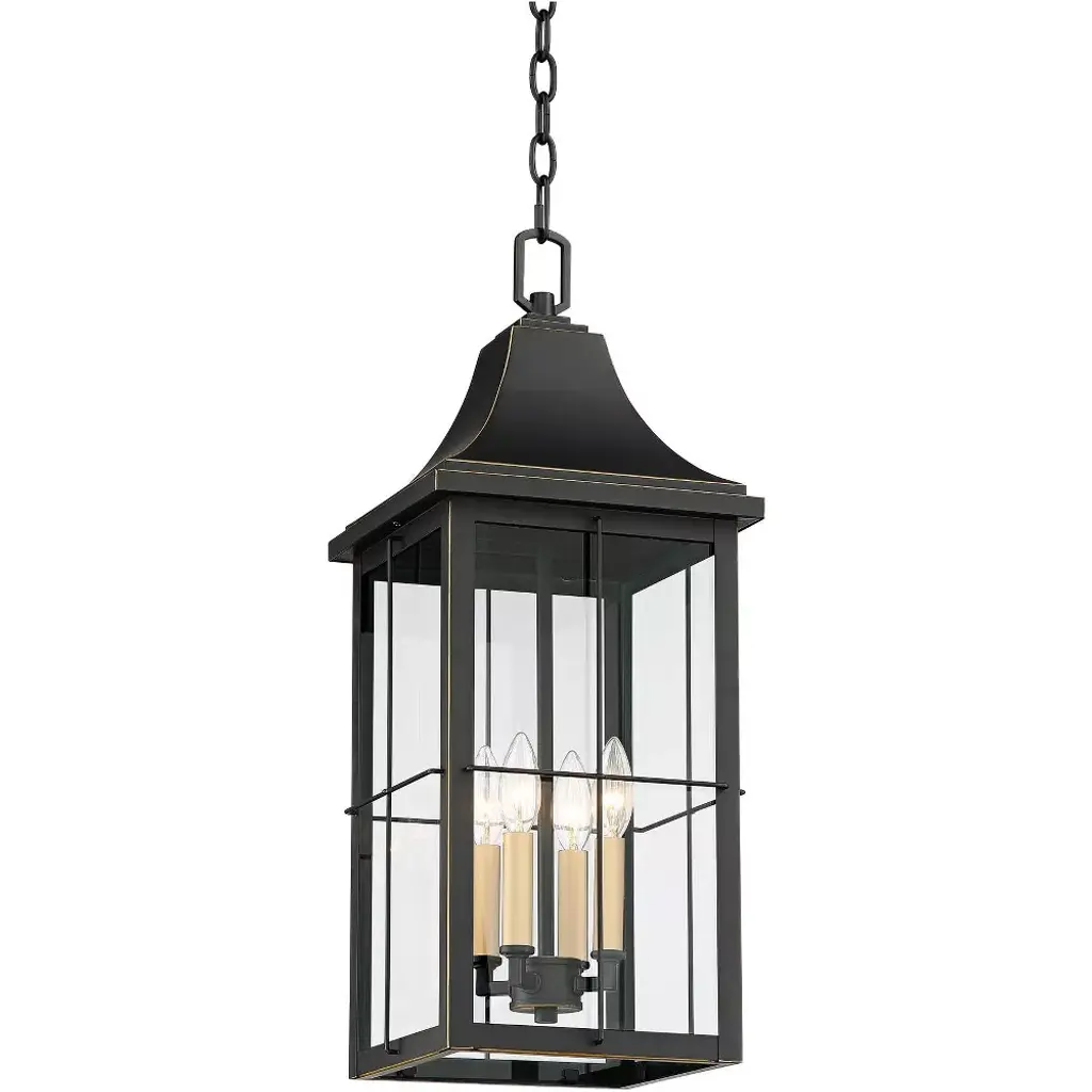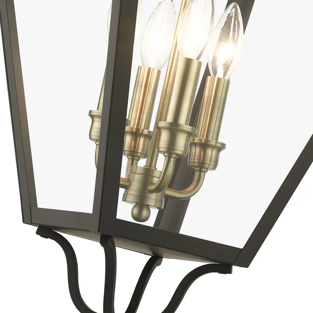 4 Light Bronze Outdoor Extra Large Pendant Lantern with Antique Brass Finish Cluster