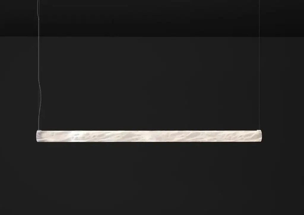 Ade l 1200 pendant lamp by alabastro italiano dimensions: d 8 x w 120 x h 8 cm. Materials: white alabaster and metal. Available in different finishes: shiny silver, bronze, brushed brass, ruggine of florence, brushed burnished, shiny gold, brushed black, freedom green, shiny black and copper. The maximum height available is 300 cm. Available in three different widths: 150, 120 and 100 cm. Please contact us. All our lamps can be wired according to each country. If sold to the usa it will be wired for the usa for instance. Ade, god of the underworld is commonly associated with the idea of indomitability and severity. Few, however, know that ade nevertheless receives worship as a god who, dwelling beneath the earth, can benefit the living by bestowing on humans the precious elements that the earth conceals, and alabaster is one of them. Its clean, minimal and understated lines recall the characteristics of the deity who reigns over the order of the world, a thin line dividing every man’s life between before and after. After years of experience in the family business, which specializes in design and lighting, riccardo and alberto ongarato found the brand alabastro italiano. Each project is conceived and designed to give a strong sign of recognizability and uniqueness. The use of precious materials such as alabaster, brass, leather and blown glass, worked by the skilful hands of our craftsmen, are combined to create “timeless” objects. From the depths of the earth to the light of the sun. up to 250v (europe/uk standard).