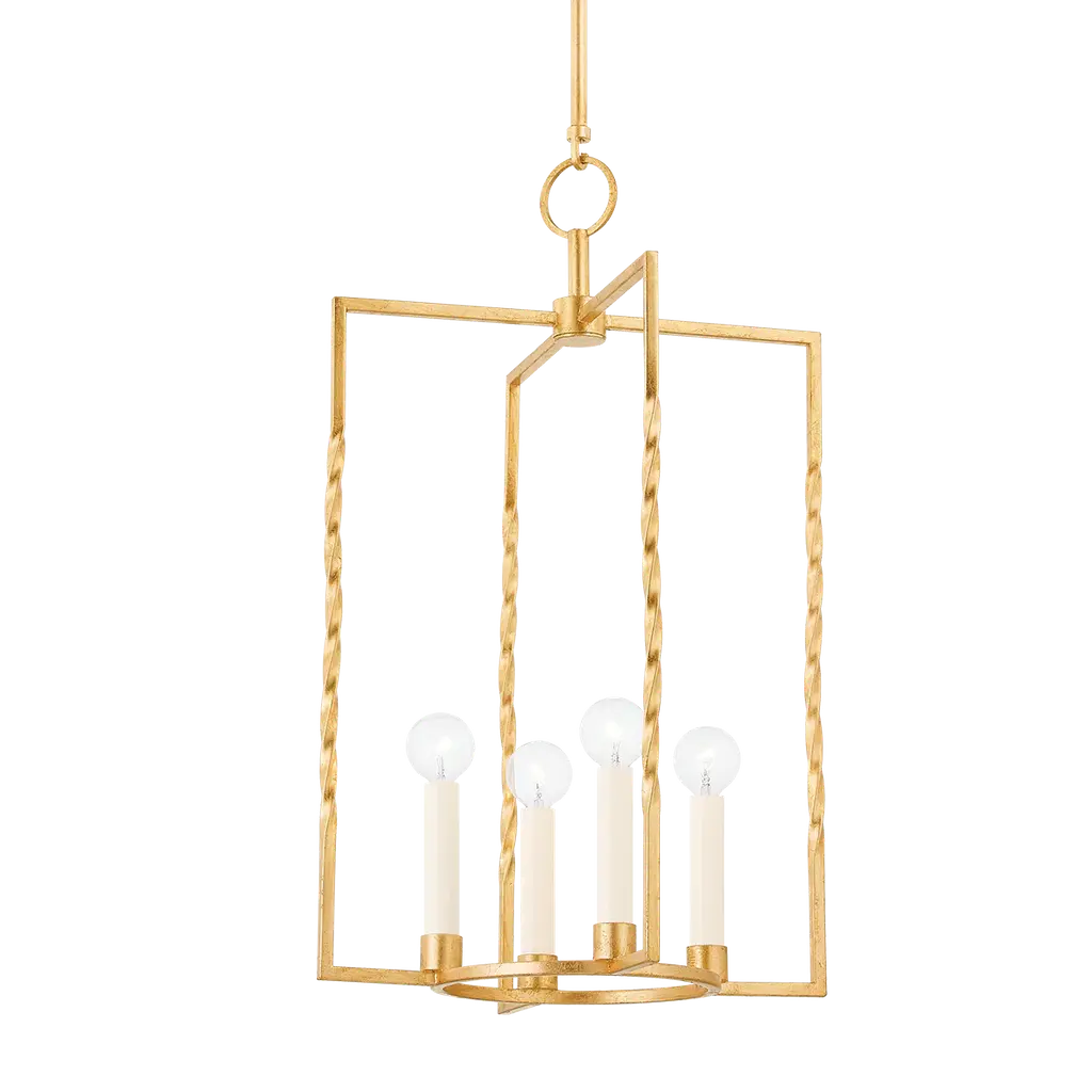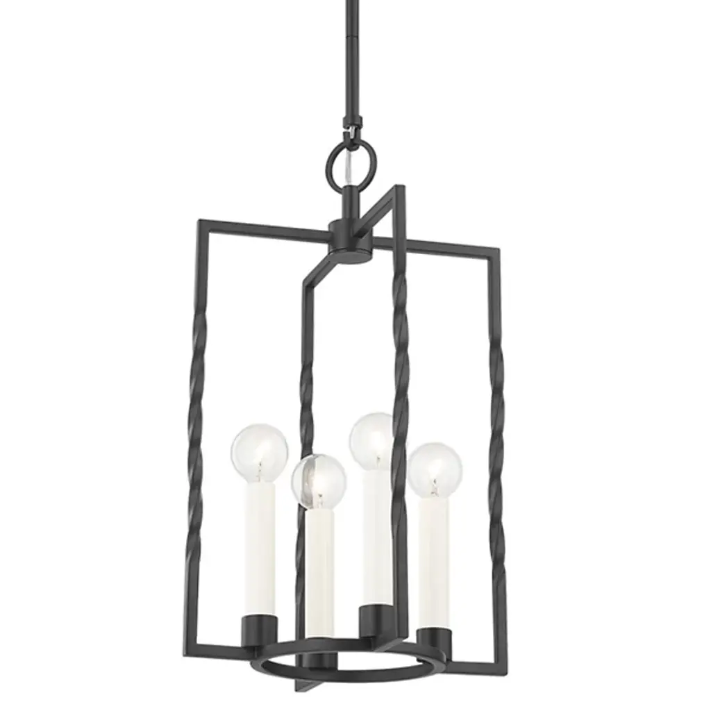 Vintage meets modern in the romantic silhouette of the Adelaide Pendant from Mitzi. This lantern features a twisted metal frame in a bold, throwback-style finish. Circular accents of the finial and base of the frame offset the sharp angles, lending balance to the design. Candelabra style sockets reference antique candles yet feel contemporary in their simplicity. Exposed bulbs wash the airy, artisanal framework with a warm hue while delivering a generous glow.