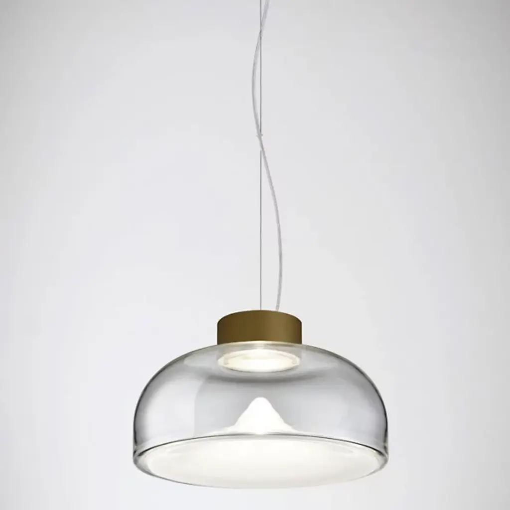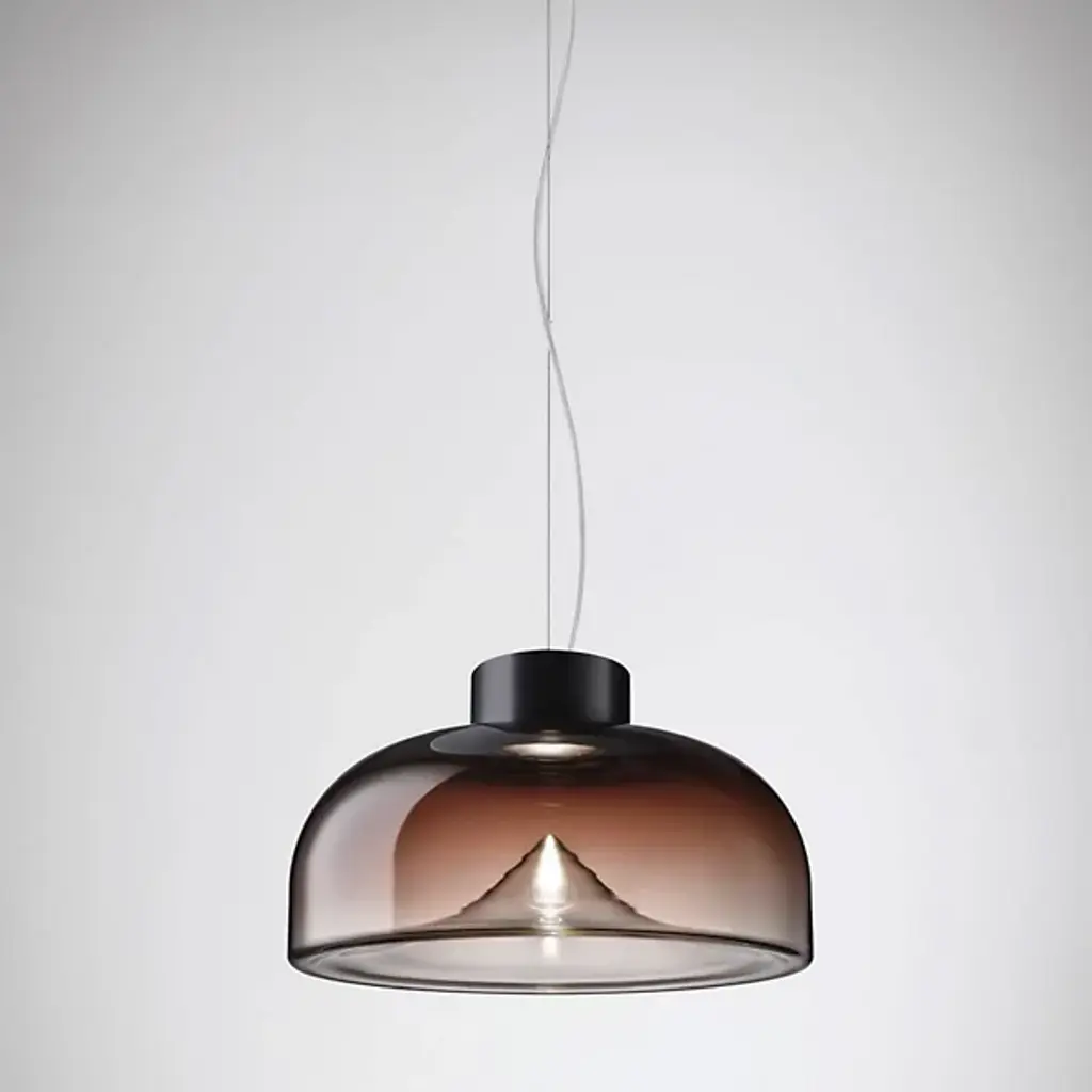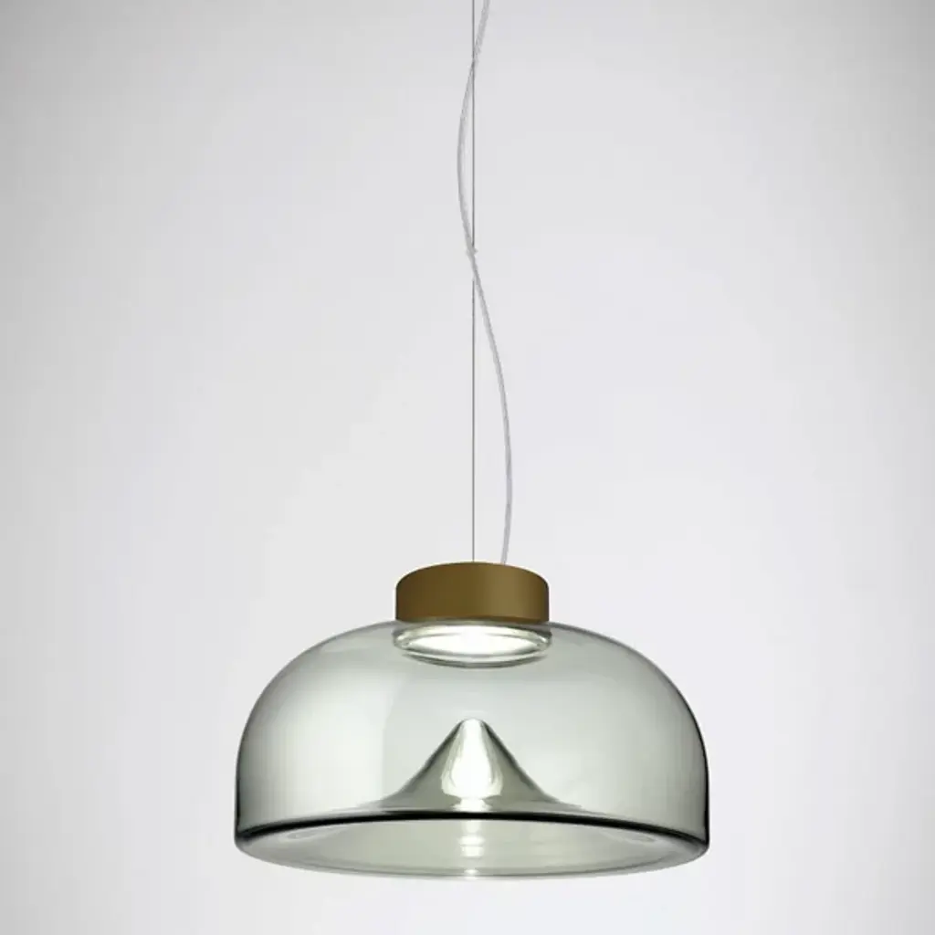 The Aella LED Pendant from Leucos Lighting is designed by Toso and Massari. Aella is the embodiment of Italian design. It is crafted with exquisite handblown glass illuminated by an integrated LED. Your pendant takes inspiration from a whirlwind, showcasing a light cone that glows brilliantly overhead. Aella has a late 1960s aesthetic that brings charm to your living space. It celebrates harmonic reflections and sinuous patterns. Metal accents add the finishing touch.