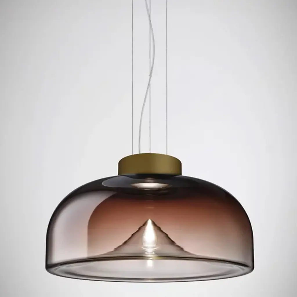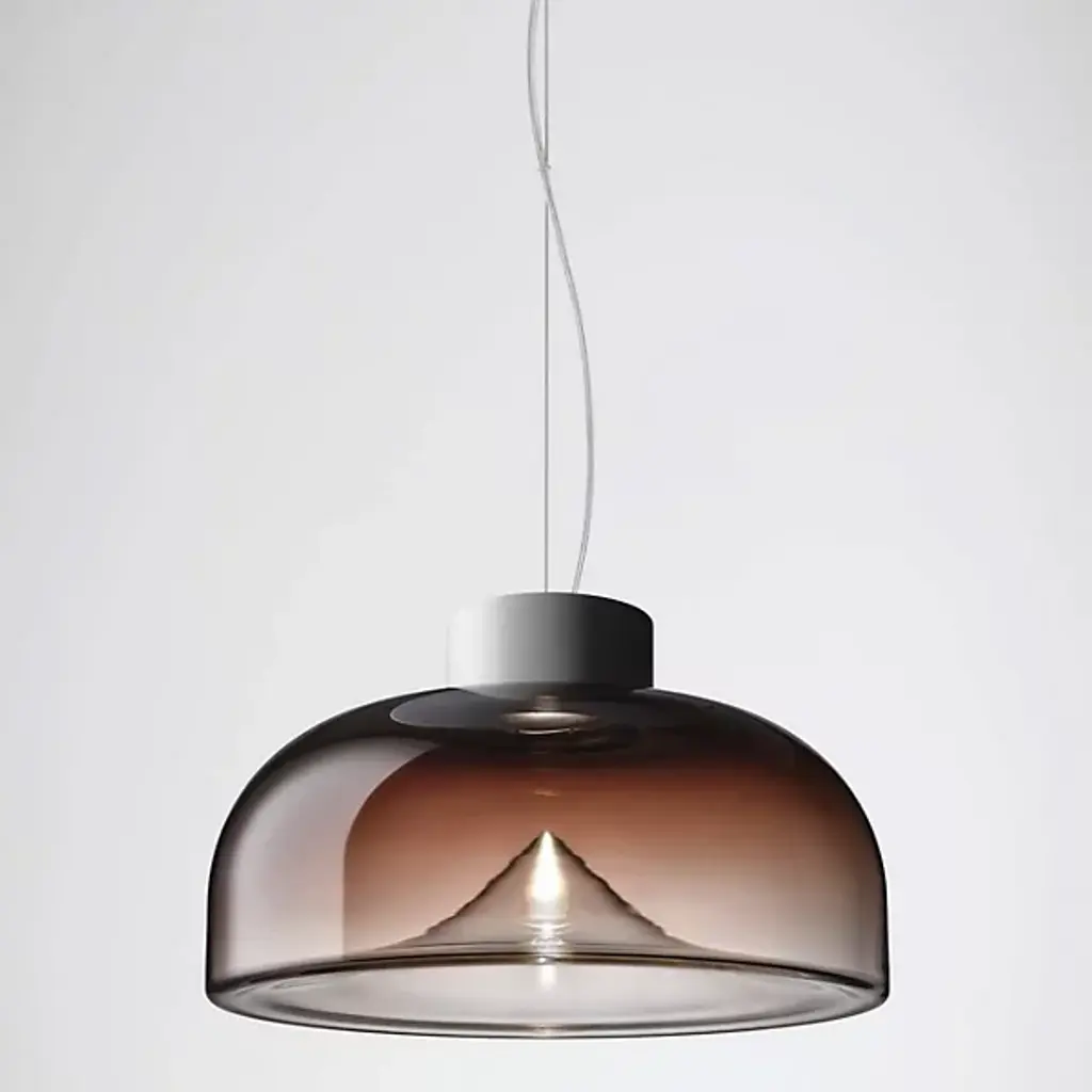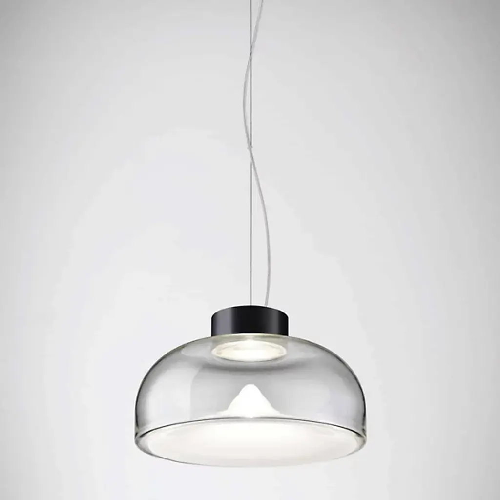 The Aella LED Pendant from Leucos Lighting is designed by Toso and Massari. Aella is the embodiment of Italian design. It is crafted with exquisite handblown glass illuminated by an integrated LED. Your pendant takes inspiration from a whirlwind, showcasing a light cone that glows brilliantly overhead. Aella has a late 1960s aesthetic that brings charm to your living space. It celebrates harmonic reflections and sinuous patterns. Metal accents add the finishing touch.