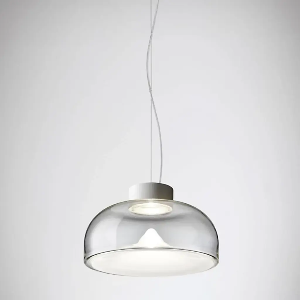 The Aella LED Pendant from Leucos Lighting is designed by Toso and Massari. Aella is the embodiment of Italian design. It is crafted with exquisite handblown glass illuminated by an integrated LED. Your pendant takes inspiration from a whirlwind, showcasing a light cone that glows brilliantly overhead. Aella has a late 1960s aesthetic that brings charm to your living space. It celebrates harmonic reflections and sinuous patterns. Metal accents add the finishing touch.