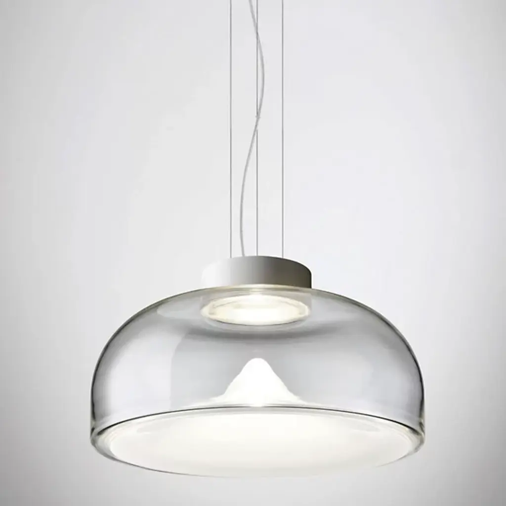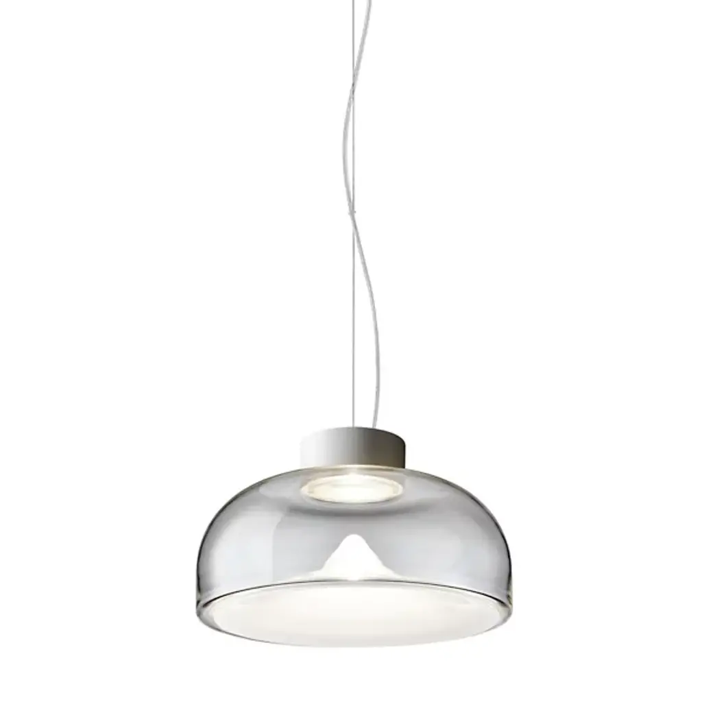 The Aella LED Pendant from Leucos Lighting is designed by Toso and Massari. Aella is the embodiment of Italian design. It is crafted with exquisite handblown glass illuminated by an integrated LED. Your pendant takes inspiration from a whirlwind, showcasing a light cone that glows brilliantly overhead. Aella has a late 1960s aesthetic that brings charm to your living space. It celebrates harmonic reflections and sinuous patterns. Metal accents add the finishing touch.