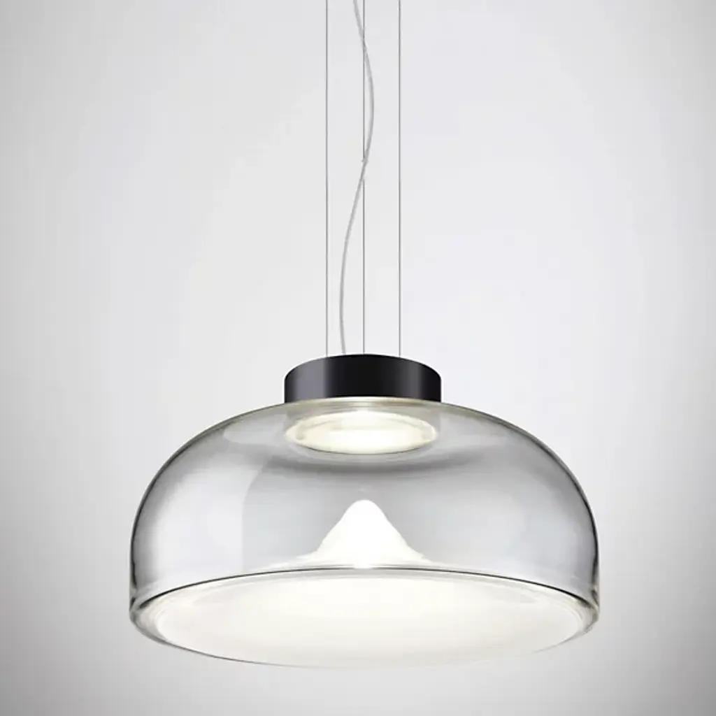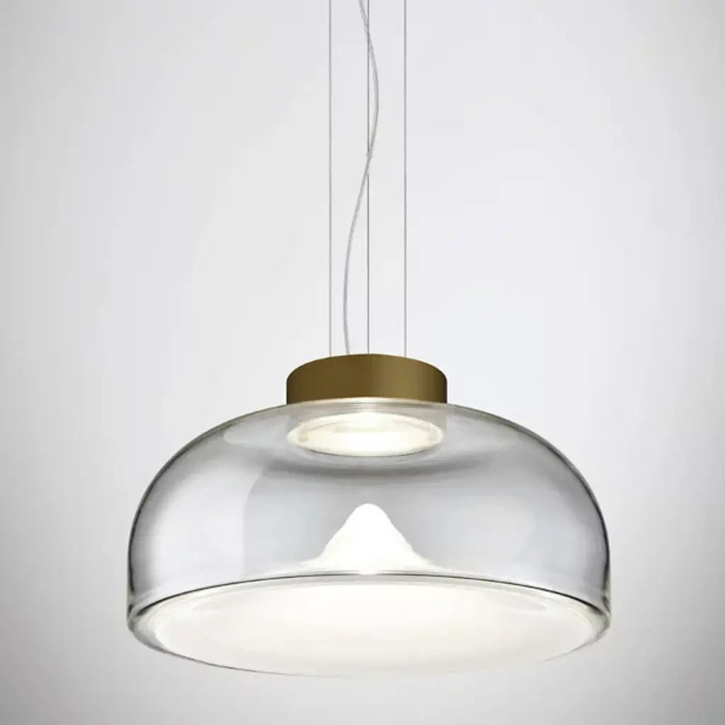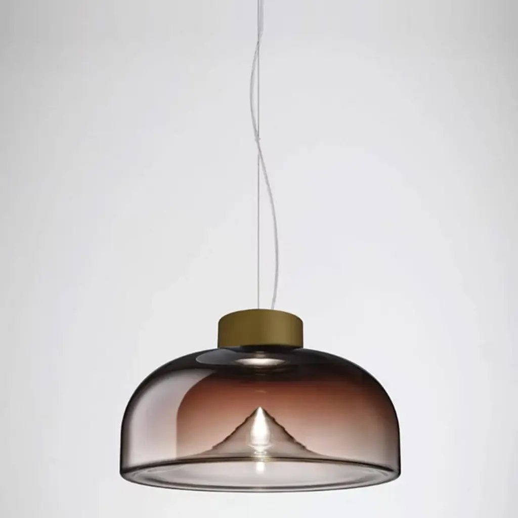 The Aella LED Pendant from Leucos Lighting is designed by Toso and Massari. Aella is the embodiment of Italian design. It is crafted with exquisite handblown glass illuminated by an integrated LED. Your pendant takes inspiration from a whirlwind, showcasing a light cone that glows brilliantly overhead. Aella has a late 1960s aesthetic that brings charm to your living space. It celebrates harmonic reflections and sinuous patterns. Metal accents add the finishing touch.
