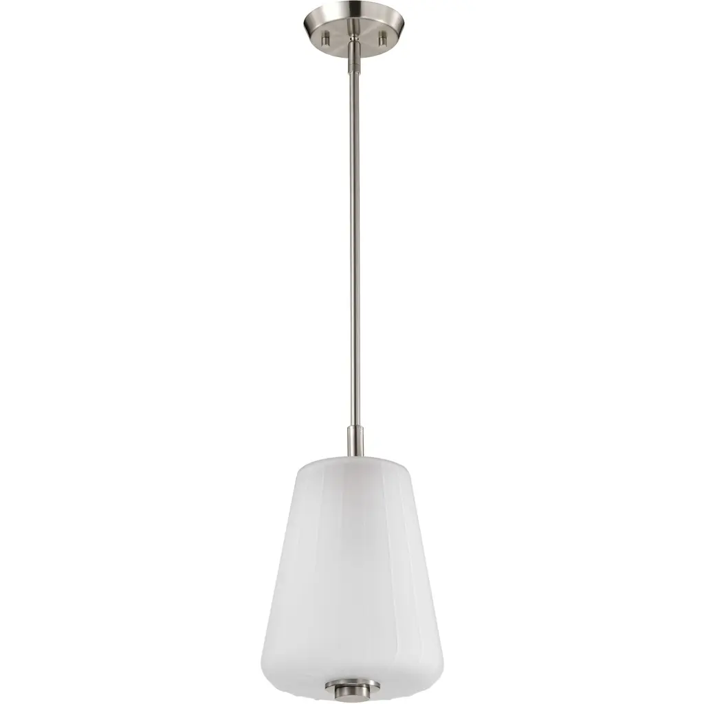 The Clark one light indoor pendant in brushed nickel is an ENERGY STAR½ qualified lighting fixture that uses LED bulbs to save you both time and money.