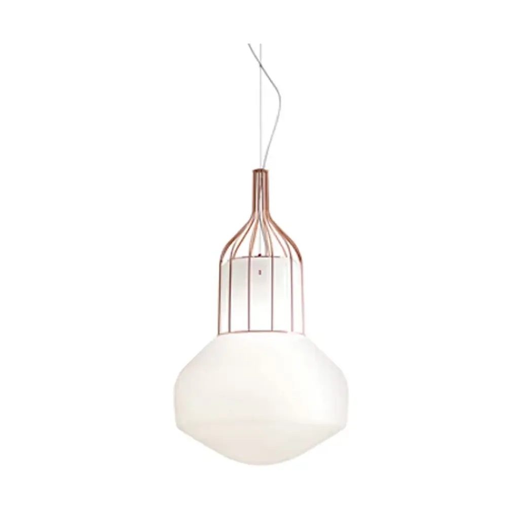Subtle beauty and a relaxing glow make the Aerostat Cage Pendant by Fabbian a welcoming addition to any space. It's designed by Guillaume Delvigne and boasts a durable metal cage structure along with a white blown glass shade. This fixture comes with a gorgeous polished canopy and is available in various finishes and sizes to best match your home décor layout.