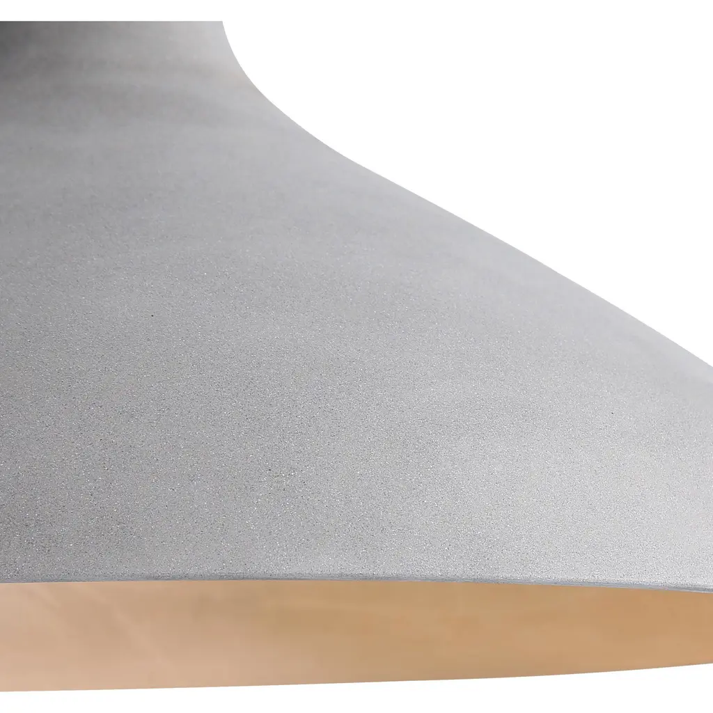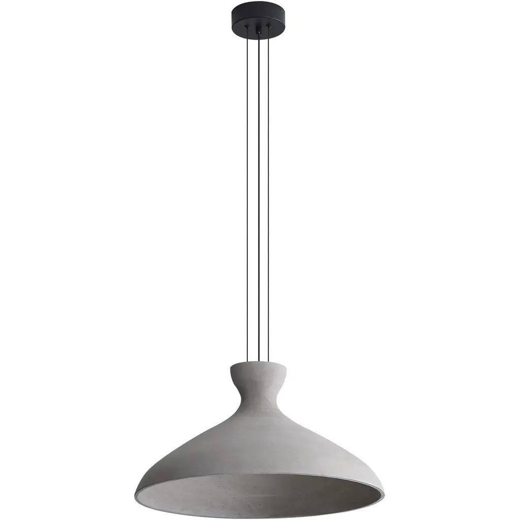 Bring architectural modernism elegance into your home with the Golden Lighting Aethera 22in Integrated LED Pendant in Grey Cement. Featuring a Cement shade and a Matte Black frame, this pendant creates a welcoming atmosphere.The attractive Cement shade presents a neutral light-to-medium gray surface, showcasing the raw and industrial character of genuine cast concrete, making a stunning decorative piece.The Matte Black finish embodies timeless elegance, with its smooth, non-reflective surface absorbing light, adding sophistication to various decor styles.Perfect for kitchens, dining rooms, and entryways, this fixture is damp location rated, suitable for spaces with occasional moisture. Easily install it on angled ceilings, as it is sloped-ceiling compatible and adjustable in height from 13.625" to 133.625".Overall dimensions are 21.63"W x 11.75"H x 21.63"D, featuring integrated LED technology rated for 1300 lumens, offering a long-lasting and dimmable light source that can adapt between three color temperatures.Enhance your living spaces with this beautifully crafted pendant that balances aesthetic appeal with functionality and durability.