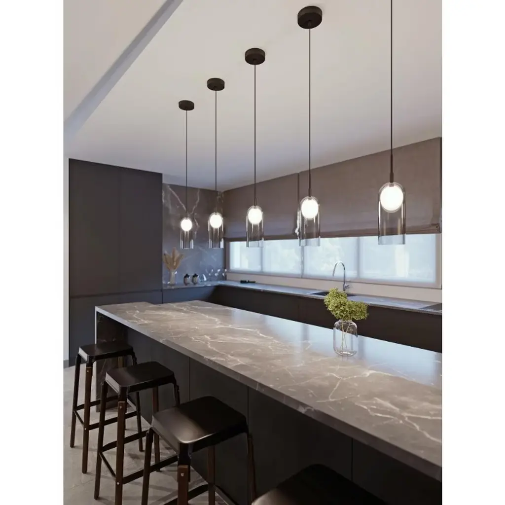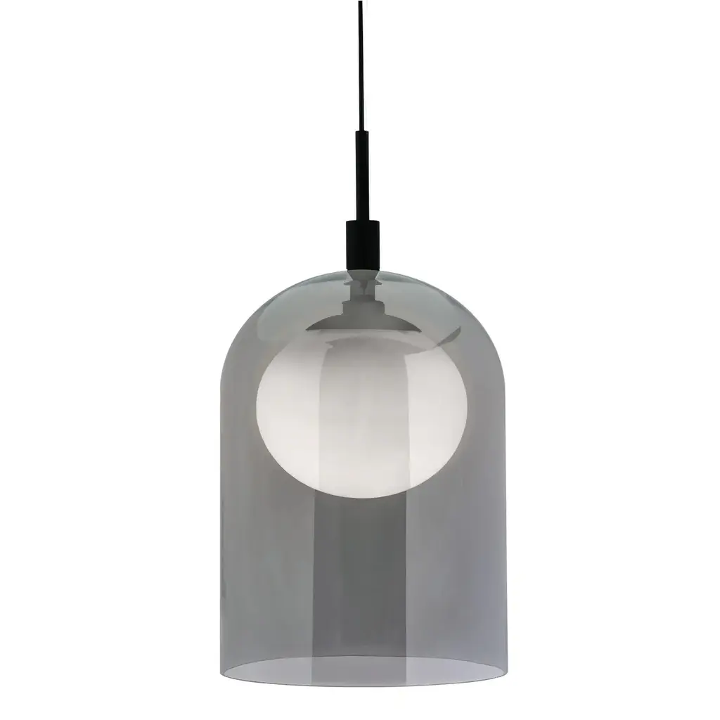 THE AFX 4� LED Pendant Light in Black is a mini pendant light ideal for grouping multiple fixtures together. This hanging pendant light features smoky black glass that diffuses the light. Place this light in your kitchen, dining room, or bedroom. Mini pendant light ideal for grouping together Smoky black glass diffuses the light Sloped ceiling capable.,