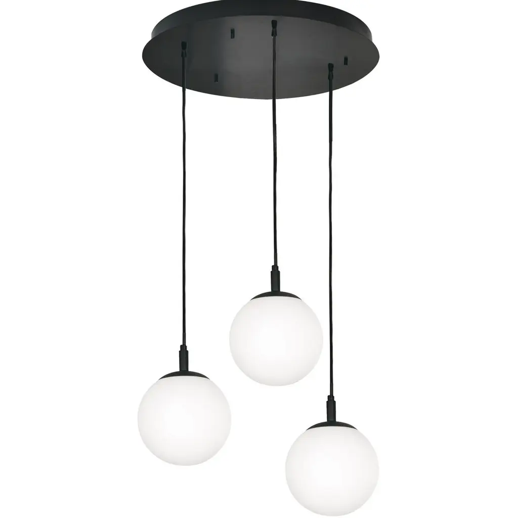 Enjoy more of your cooking and dining time with the Roxy Triple Pendant. Designed with a beautiful exterior finish and strong steel base, this modern, overhead light fixture produces ample ambient light. Use this fixture to transform the look and feel of your kitchen or dining room space for years to come. This Pendant is designed for residential or commercial use with hardwire installation only / Dimmable capability with dimmable bulb only. / Black Steel Finish / Color/Finish: Black / Material: Steel / Dimensions: 48 inches long x 18 inches wide x 18 inch diameter x 6.25 inches high / Maximum Height: 114.25 inches / Weight: 9.38 pounds / Shade Color/Finish: Black / Shade Material: Steel / Slope Ceiling Capable: No / System Type: Hardwired Assembly Required: Yes / Canopy Included: Yes / Canopy Diameter: 18.00 / Cord Length: 108.00 / Dimmable: Yes / Shade Included: Yes / Shade Dimensions: 7.88 x 7.88. ,