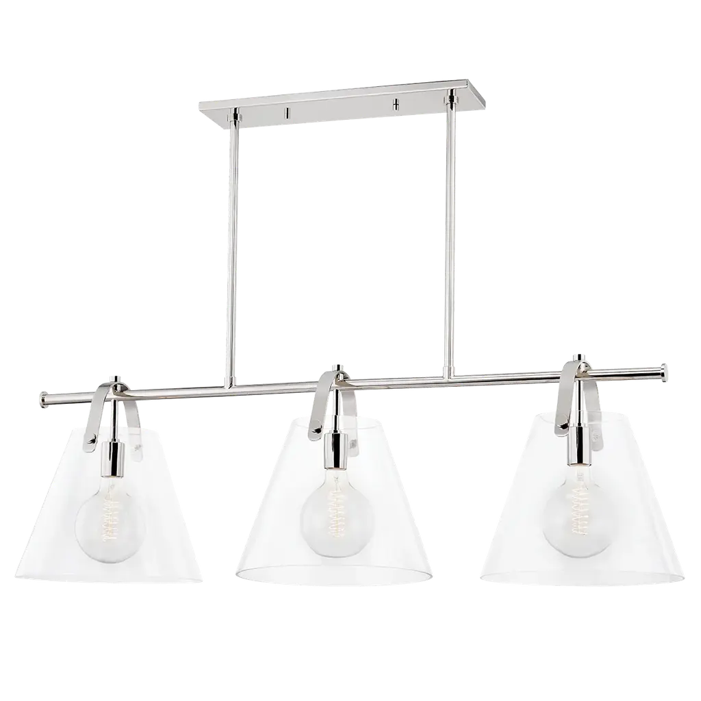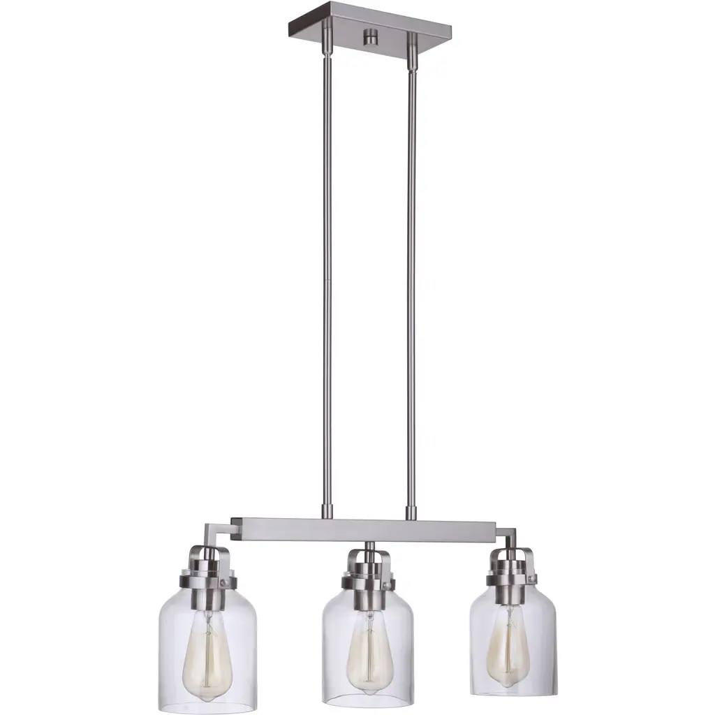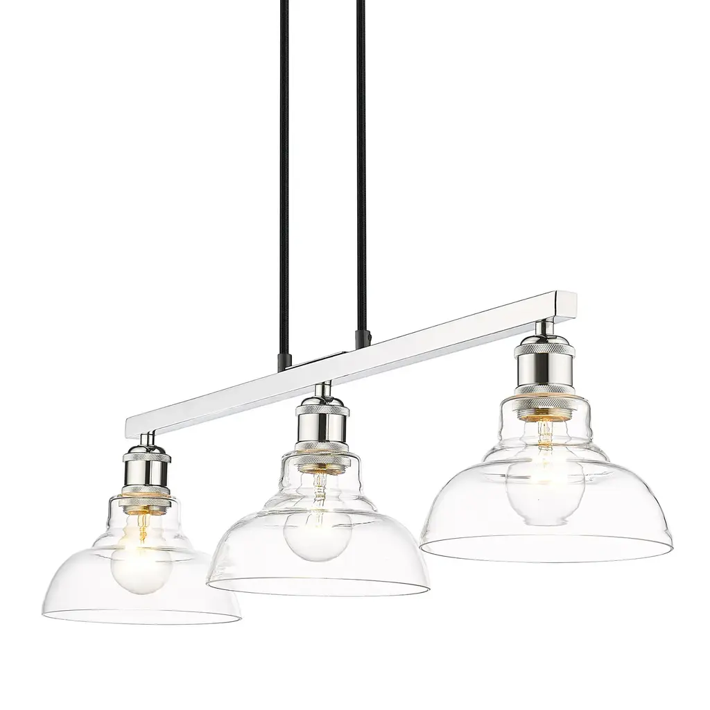 The William 3 Light Linear Pendant by AFX offers a modern, versatile look that blends seamlessly into the interior of your home. Featuring a medium base in black and 3 hanging lights with clear glass shades, this pendant brings sleek style to the area above the kitchen island or above the dining table. Dimmer: TRIAC/ELV / Light bulb not included / Suitable for damp locations. ,