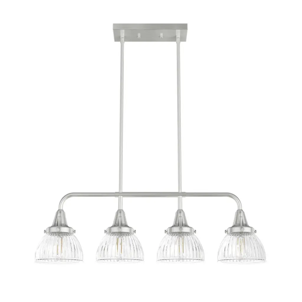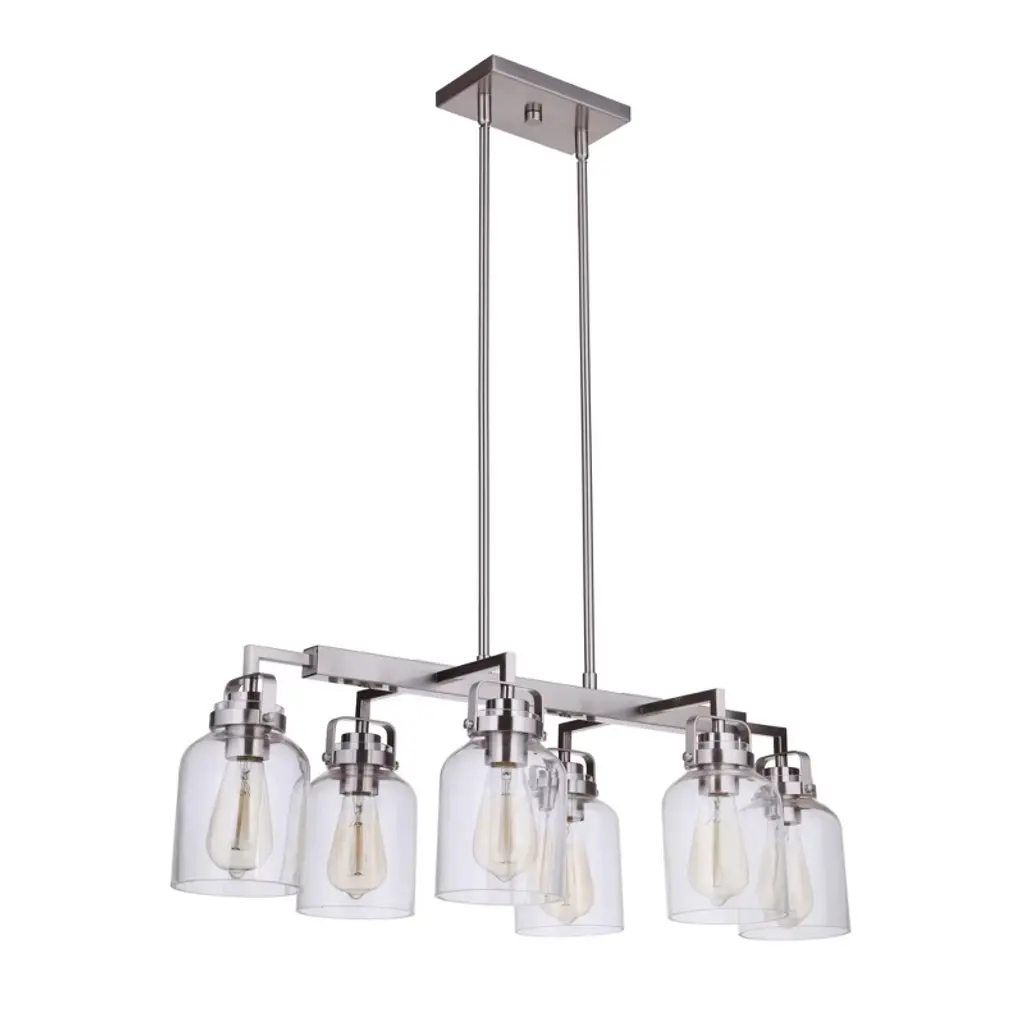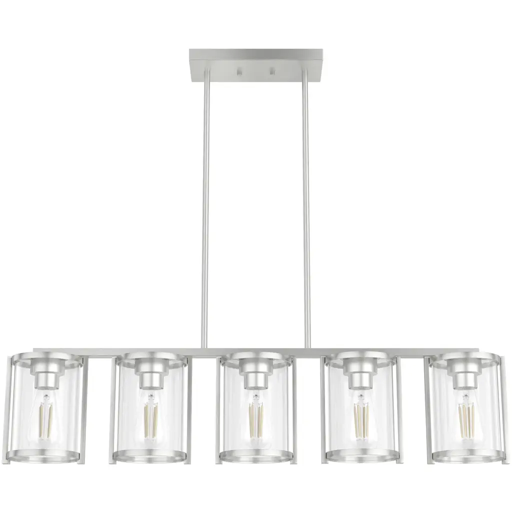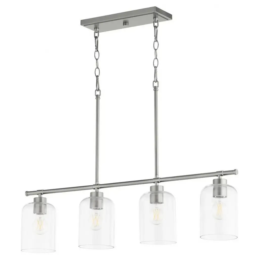 The William 3 Light Linear Pendant by AFX offers a modern, versatile look that blends seamlessly into the interior of your home. Featuring a medium base in black and 3 hanging lights with clear glass shades, this pendant brings sleek style to the area above the kitchen island or above the dining table. Dimmer: TRIAC/ELV / Light bulb not included / Suitable for damp locations. ,