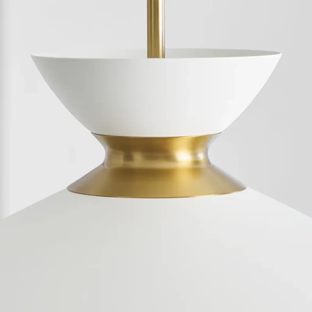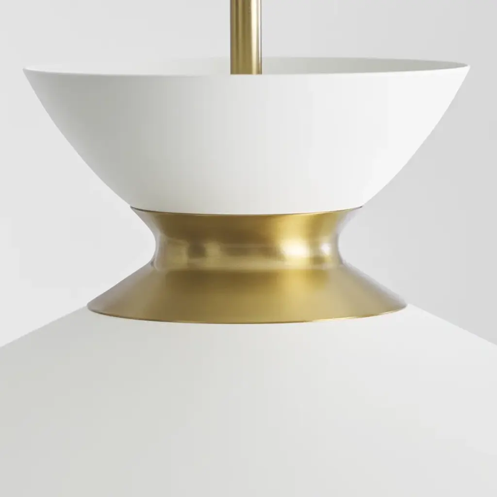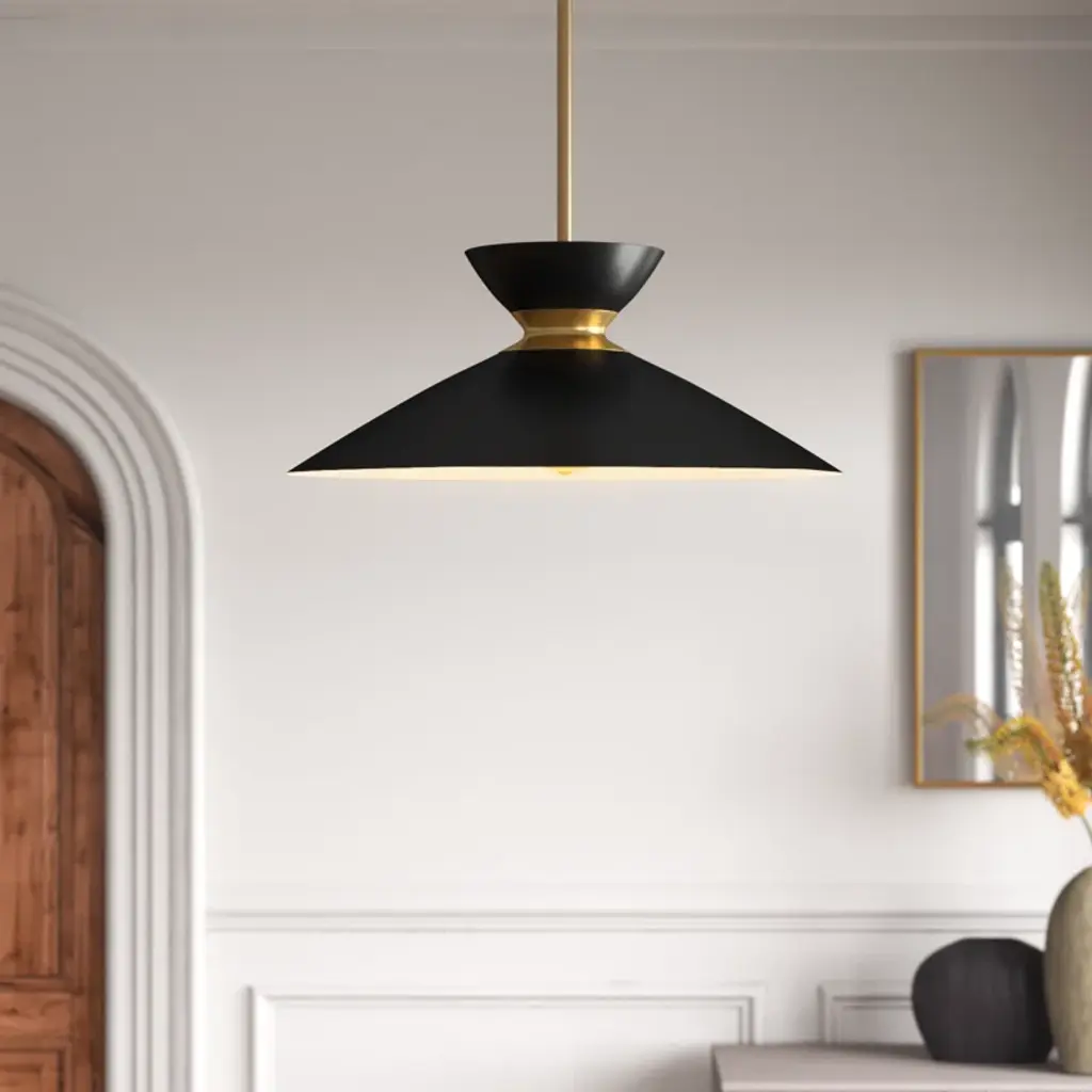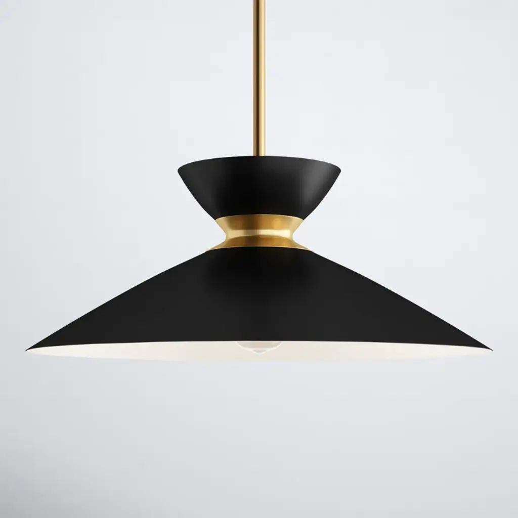 Agata is a chic pendant crafted of metal and a center wrap detail. The cleanness of the contemporary look gives the fixtures a slightly industrial feel. Notice how the top and bottom frame contrast with the metal band. The Agata one light indoor pendant in midnight black with burnished brass features modern mid-century refinement and luxe materials for a minimalist aesthetic.