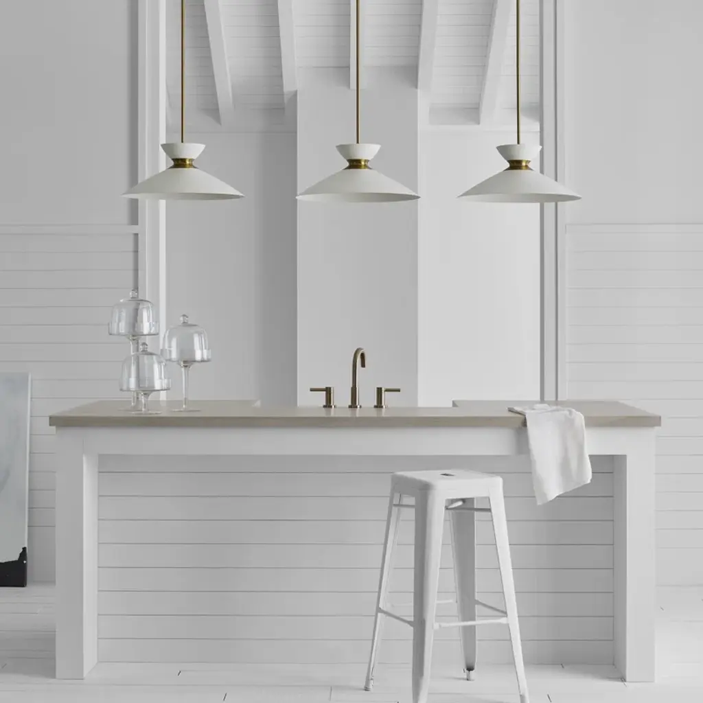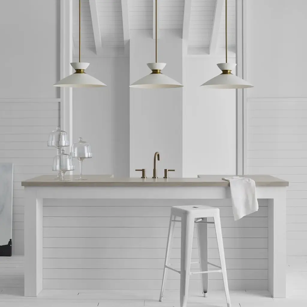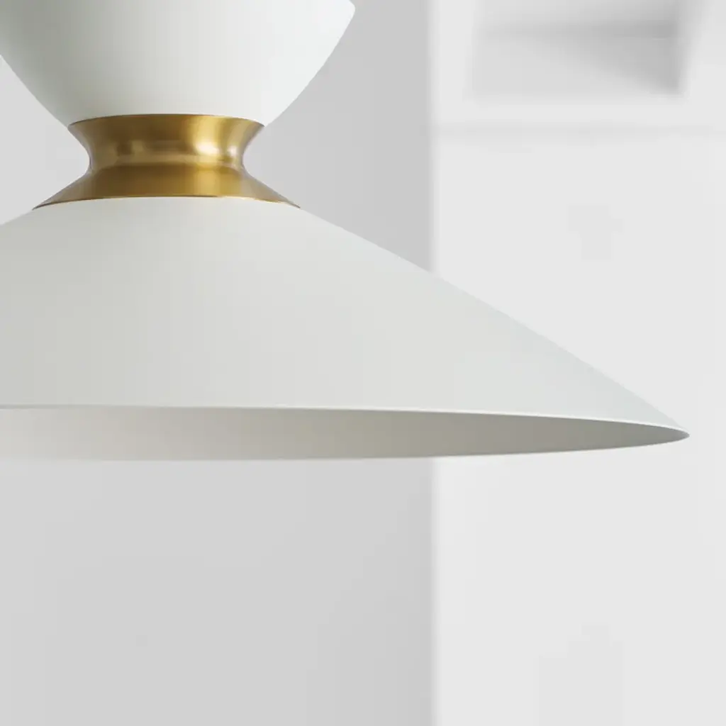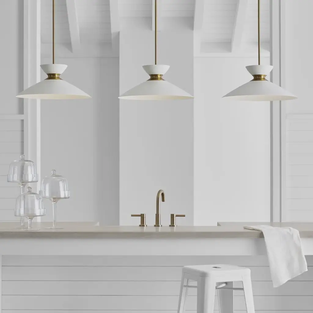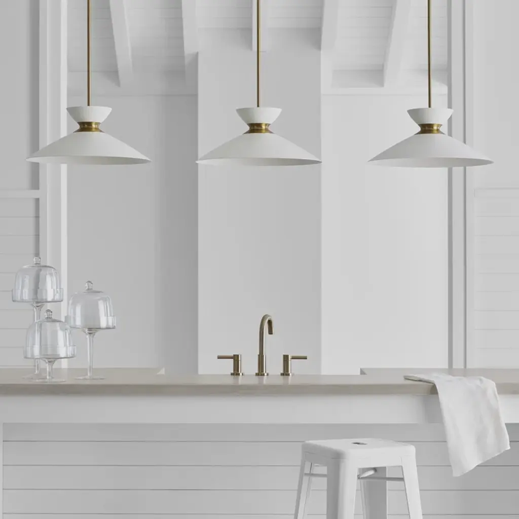 Agata is a chic pendant crafted of metal and a center wrap detail. The cleanness of the contemporary look gives the fixtures a slightly industrial feel. Notice how the top and bottom frame contrast with the metal band. The Agata one light indoor pendant in midnight black with burnished brass features modern mid-century refinement and luxe materials for a minimalist aesthetic.