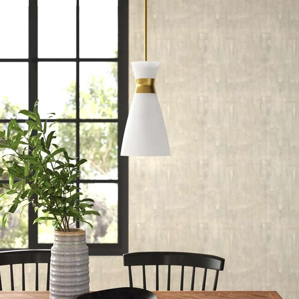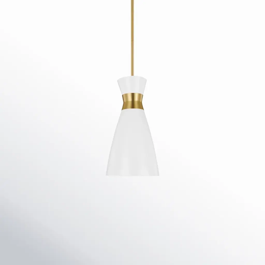 The Agata modern mid-century collection of pendant lights from Joss & Main Crafted by Generation Lighting. This collection offers the refinement of luxe materials that move beyond function, with brass details that contrast with its white shade. The conical body shape is crisp and minimalist, yet makes a striking statement in any room.