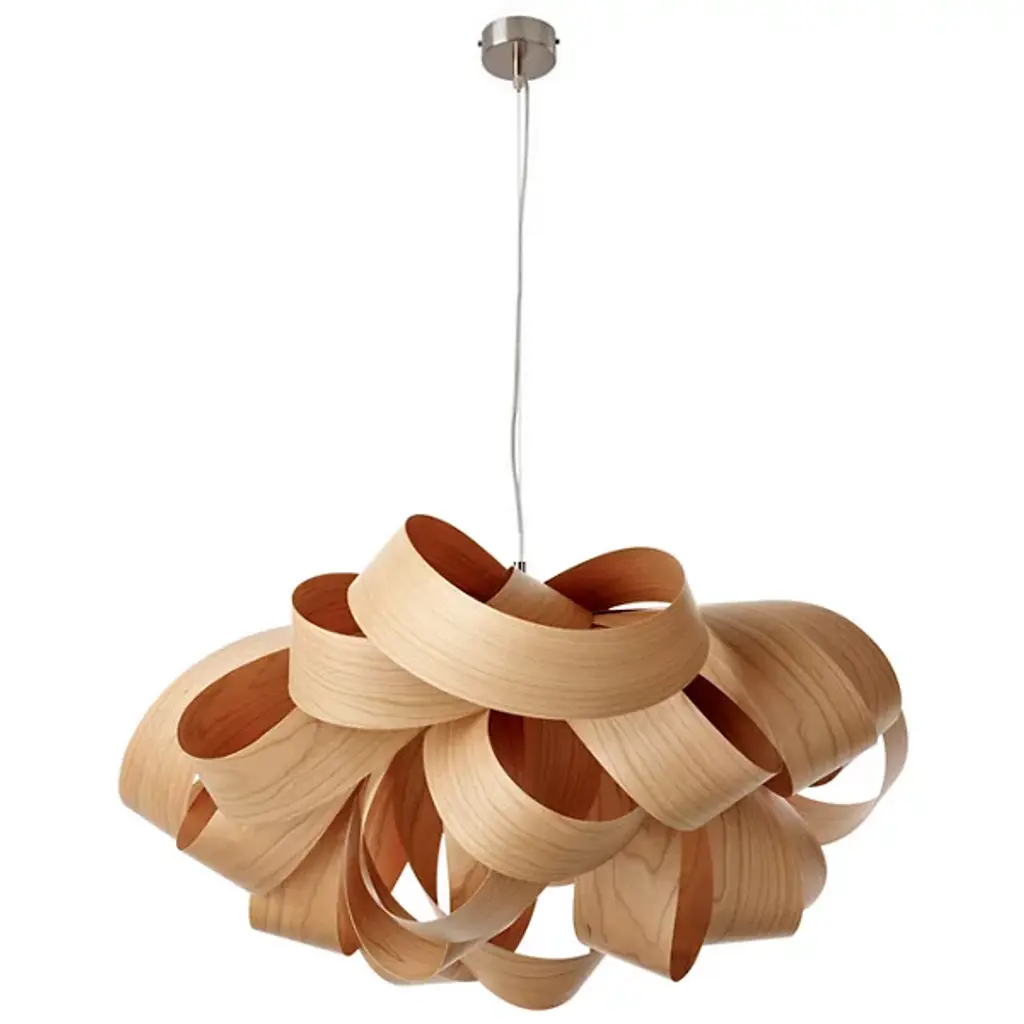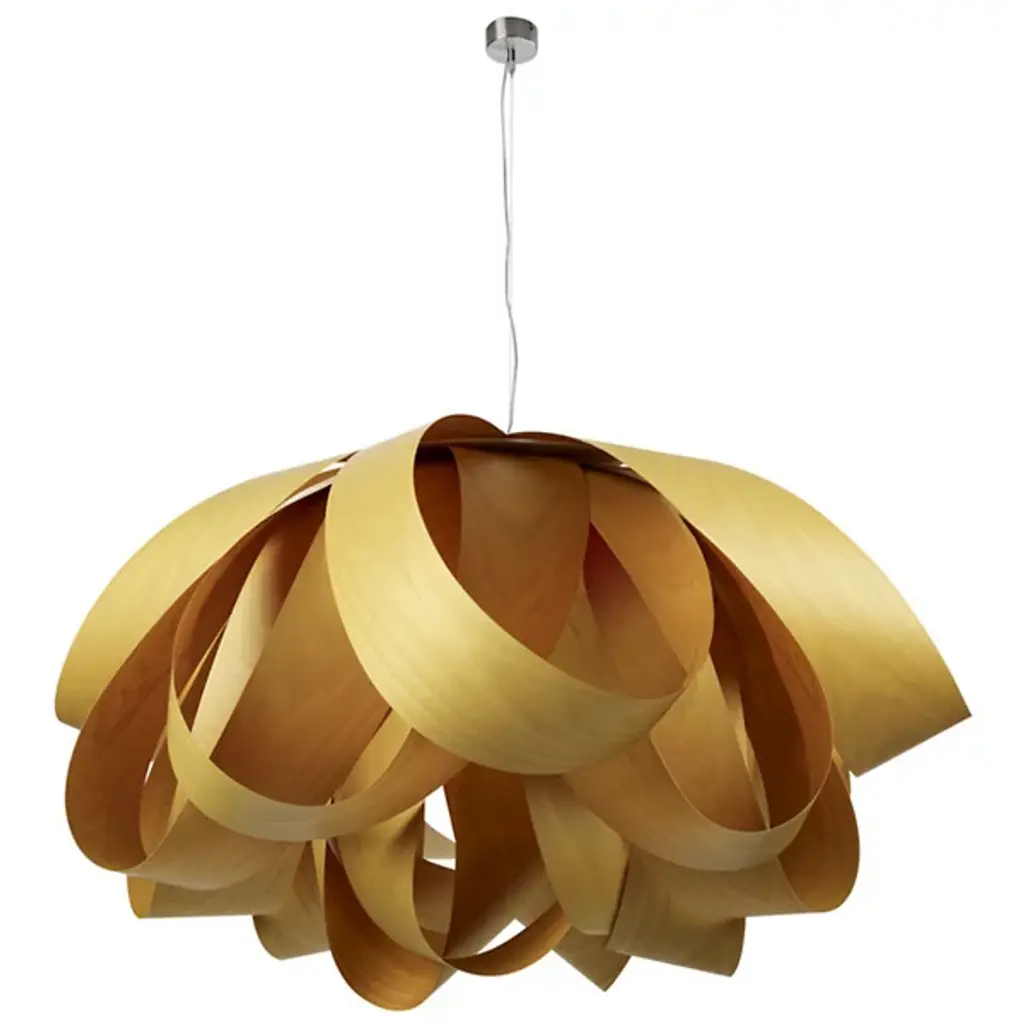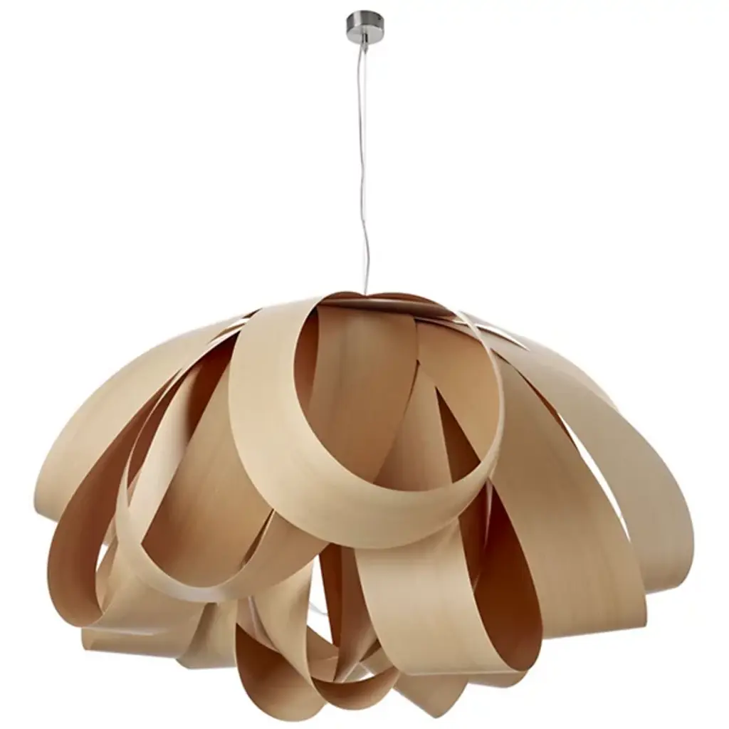 The lamp that blooms. The LZF Agatha Pendant was designed by Luis Eslava Studio with a fluffy, organic shape created by the strategic arrangement of wood ribbons. At once light and substantial, Agatha can be adapted to any variety of home or business installations.