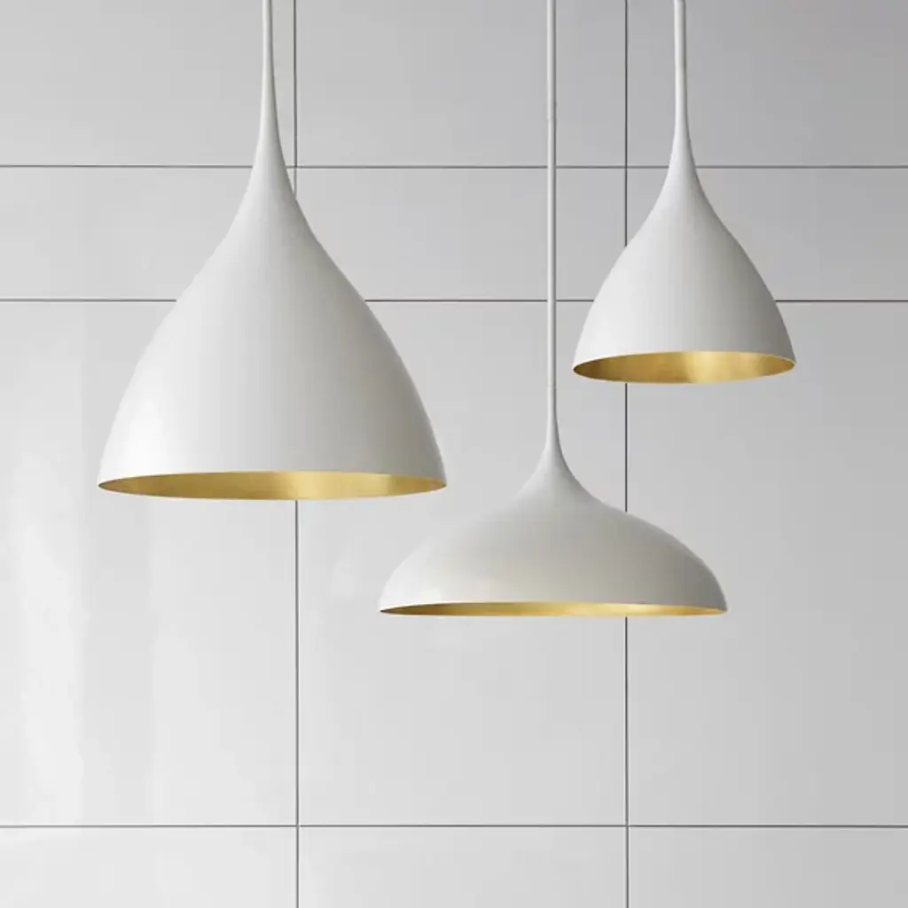 Sleek, minimalist form meets functional lighting in the Agnes Pendant by Visual Comfort Signature, formerly known as Visual Comfort. Its body features a rounded, parabolic head (made of aluminum) which suspends from a near-invisible support stem. Contrasting inner and outer finishes provide additional warmth and depth to the fixture, culminating in a dazzling reflective display once lit.