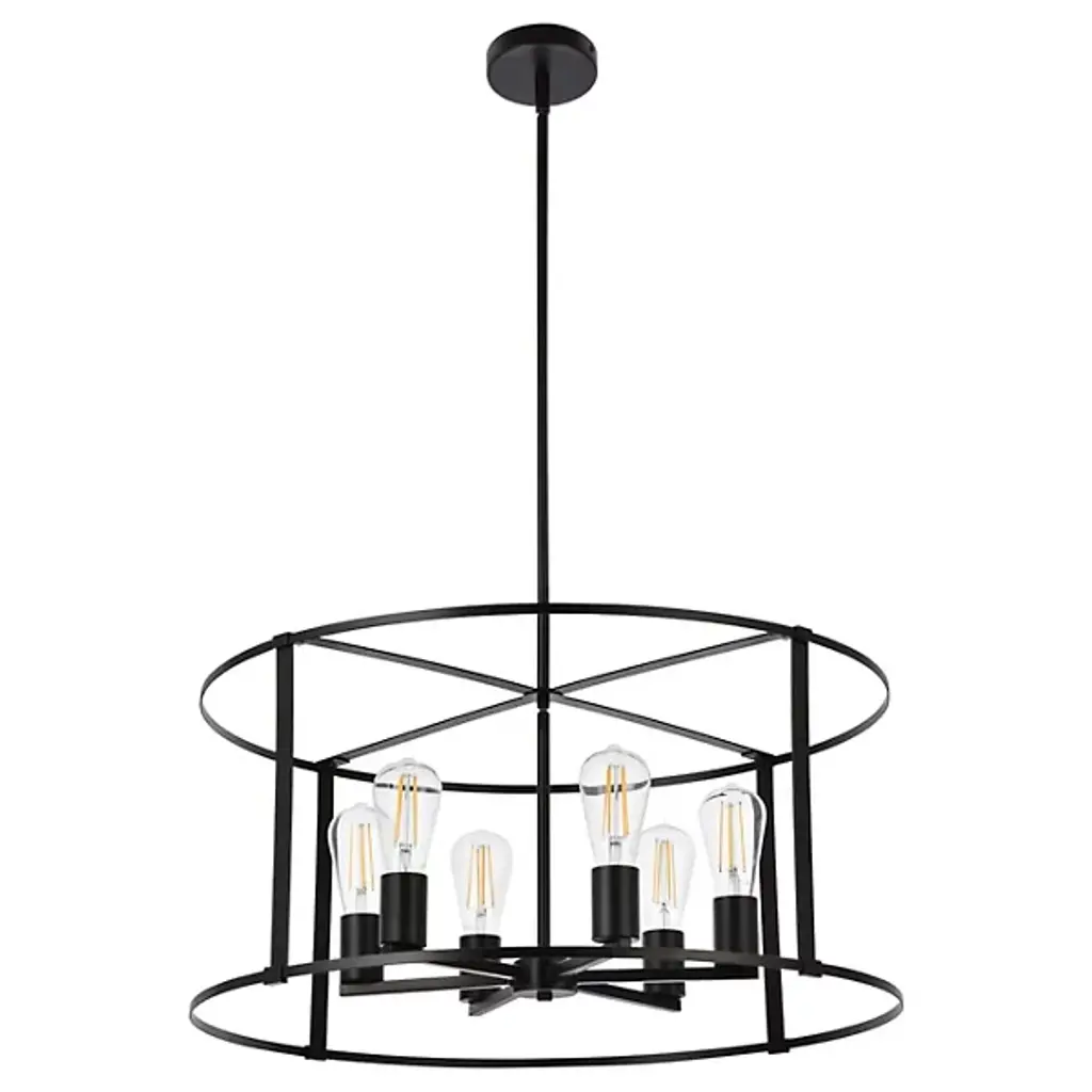 The Agnys Pendant from Elegant Lighting fuses geometric precision with industrial inspiration. This dimmable light presents a circular frame bisected by a cross-shaped structure, resulting in an eye-catching formation of lines and voids. Four exposed bulbs nestle within this architectural wonder, ready to bathe your surroundings in a warm glow. Hanging from a sturdy rod, this pendant exemplifies how simple shapes can create extraordinary visual impact.