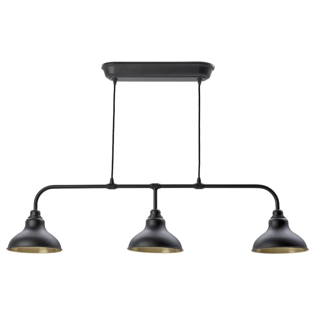 AGUNNARYD Pendent lamp with 3 lamps - black. This lamp gives a pleasant atmosphere for dining, spreading direct light across your dining or bar table. Light bulbs sold separately. IKEA recommends LED bulb E26 (3 pcs). Hardwired installation. Mounted with screws. Screws are not included.