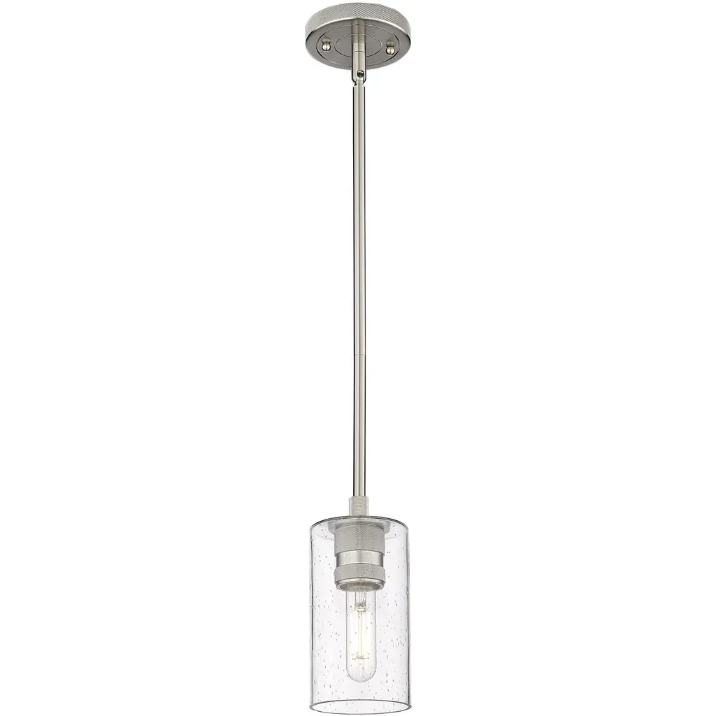 The Aida Collection comes in Chrome and Satin Platinum with clear and etched crackle glass shade. This Traditional indoor Mini Pendant will complement the decor in any room of your home. Made with solid steel construction to look great and last for years to come.