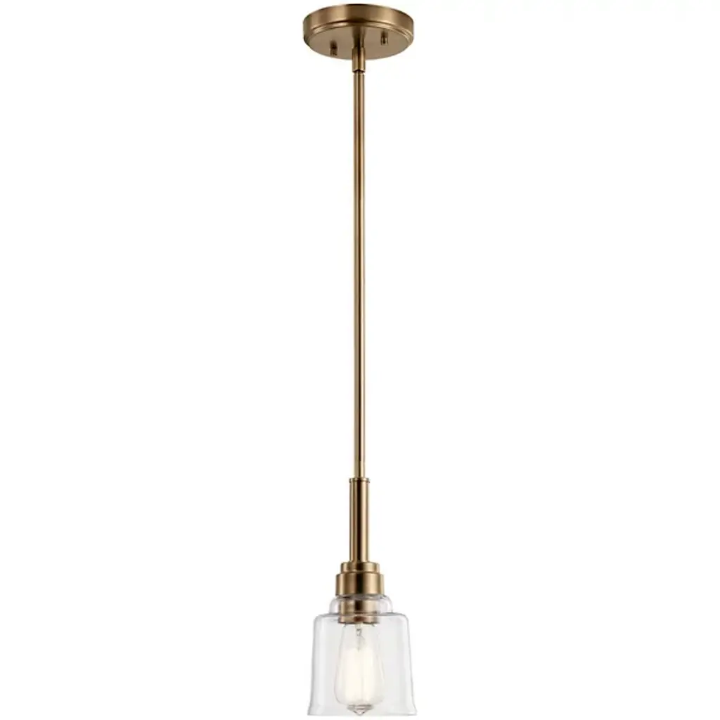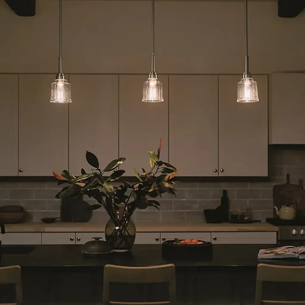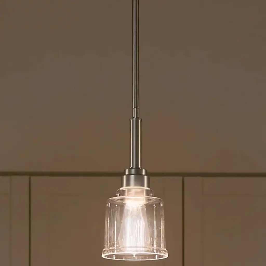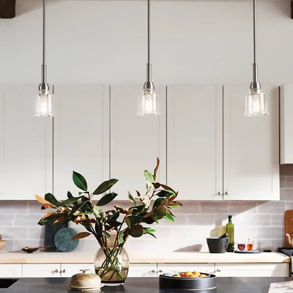 A simple yet effective modern piece, the Aivian Mini Pendant from Kichler provides a welcoming display of light to a range of rooms in your home. Made of smooth metal, this piece lowers from the ceiling with a long and thin rod. A single, downward-facing bulb rests within a glass shade. When paired with multiple units, the light is amplified, creating a bright display that evenly spreads over the space.