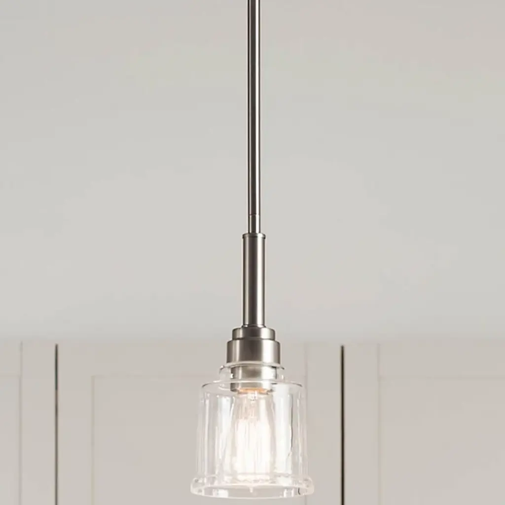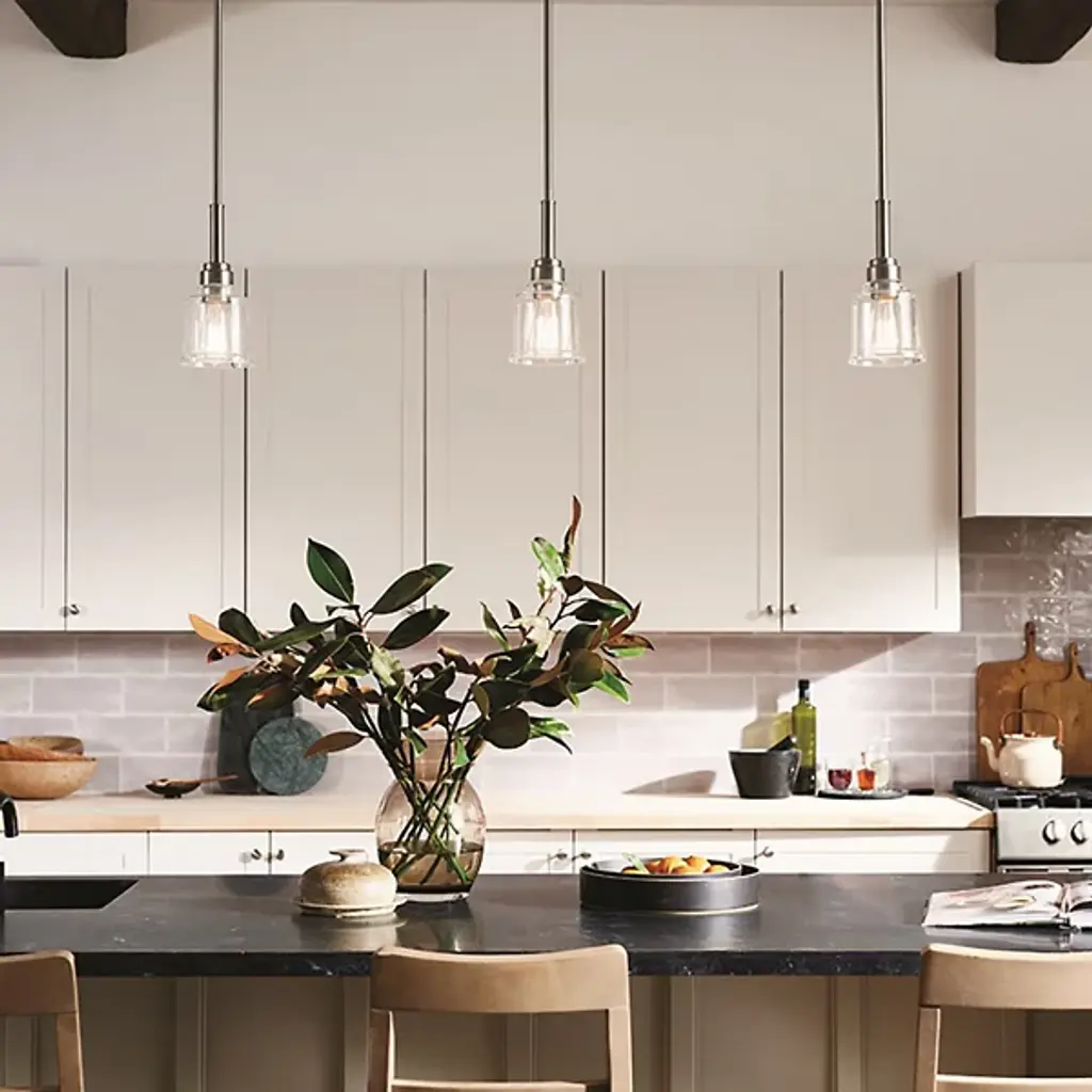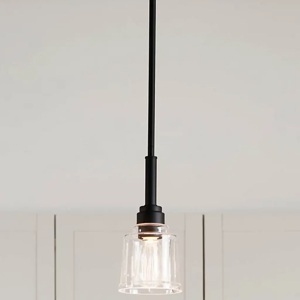 A simple yet effective modern piece, the Aivian Mini Pendant from Kichler provides a welcoming display of light to a range of rooms in your home. Made of smooth metal, this piece lowers from the ceiling with a long and thin rod. A single, downward-facing bulb rests within a glass shade. When paired with multiple units, the light is amplified, creating a bright display that evenly spreads over the space.