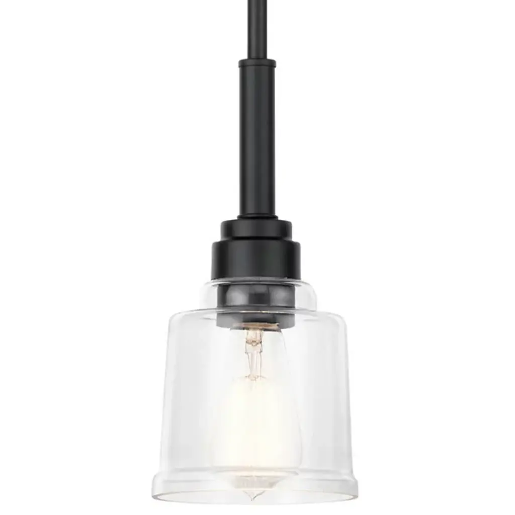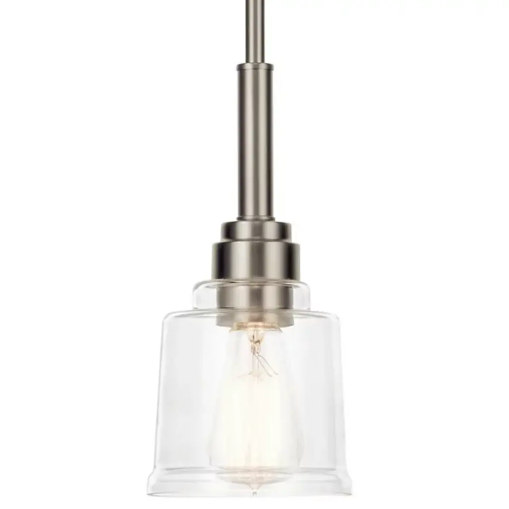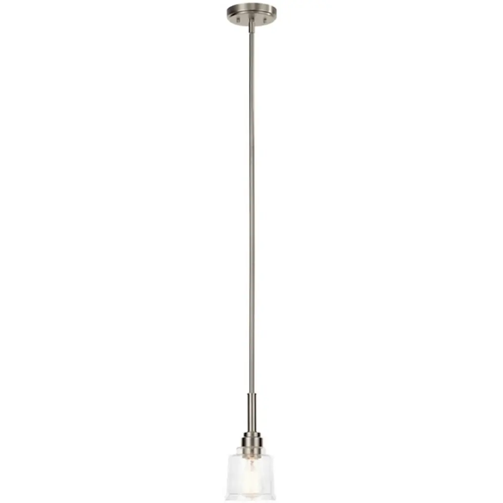 A simple yet effective modern piece, the Aivian Mini Pendant from Kichler provides a welcoming display of light to a range of rooms in your home. Made of smooth metal, this piece lowers from the ceiling with a long and thin rod. A single, downward-facing bulb rests within a glass shade. When paired with multiple units, the light is amplified, creating a bright display that evenly spreads over the space.