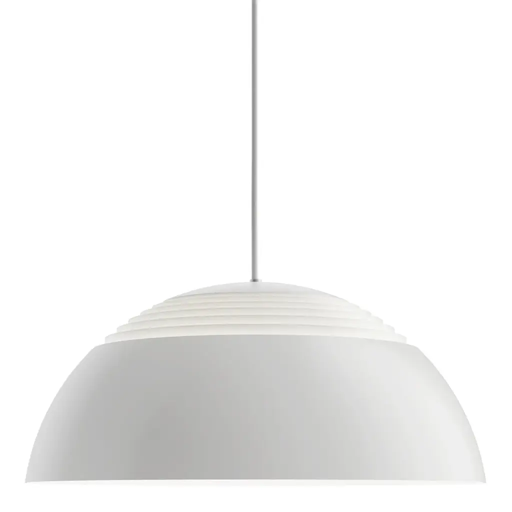 AJ Royal is among the Arne Jacobsen designs developed in 1957 for the SAS Royal Hotel in Copenhagen (Radisson Collection). Here it could be found in a copper version above the tables in the snack bar behind the atrium, in the lounge on the 1st floor and in the Panorama Lounge on the 21st floor. The hotel opened in 1960 and with its 22 floors it gave Copenhagen its first real high-rise building heavily inspired by New York skyscrapers. In those days, the lamp was simply called the AJ Pendant. The segmented spherical design from 1958 is regarded as Jacobsen's first steps back to the basic geometrical shapes that characterize the world-famous Danish architect's later designs. The AJ Royal formed part of the overall design concept that Jacobsen developed for the hotel, of which a number of designs have achieved iconic status. Jacobsen did not only design the hotel down to the smallest detail for SAS (Scandinavian Airlines), he also designed nearly all the hotel's original furniture and utility items. The lamps are probably the most well-known globally, including the AJ Lamp from 1957. The AJ Royal was originally produced in three colors: light grey, dark brown and black. Today, the AJ Royal is available in white in its two original sizes. A smaller variant is introduced in 2020 to celebrate the 60th anniversary of the opening of the hotel, just as the series is reintroduced in black. The AJ Royal retains its classic, graphic look as sharply as ever – irrespective of whether it lights up a dining table, is used in an office, or a showroom, where it ensures an even and flawless downward light and generates ambience with its softened upward light.