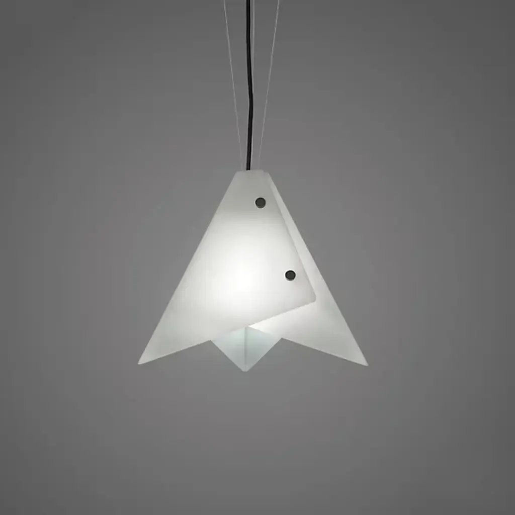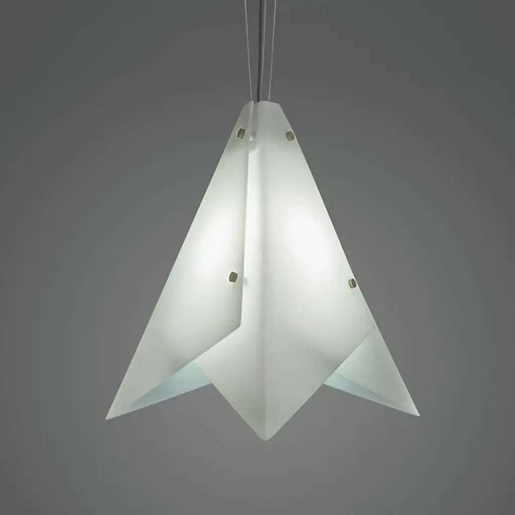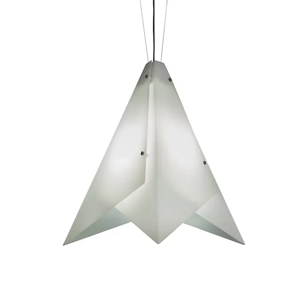 A design to unfold with your eyes. Like an intricately crafted piece of origami, the Akira 21471 Acrylic Pendant from Ultralights finds the striking balance between simplicity and complexity. This pendant's sleek, precise construction serves as a futuristic display in the contemporary home. Made from opal acrylic, the shade gets the eyes moving with the sharp angles created by its folded shapes. Arranged with a sculptural quality, the acrylic shade is secured with visually popping metal accents. The opaque shade mellows out the light of the bright LED bulbs into an alluring ambient glow. Light also fans out the sleek opening to accentuate your tables or the floor.