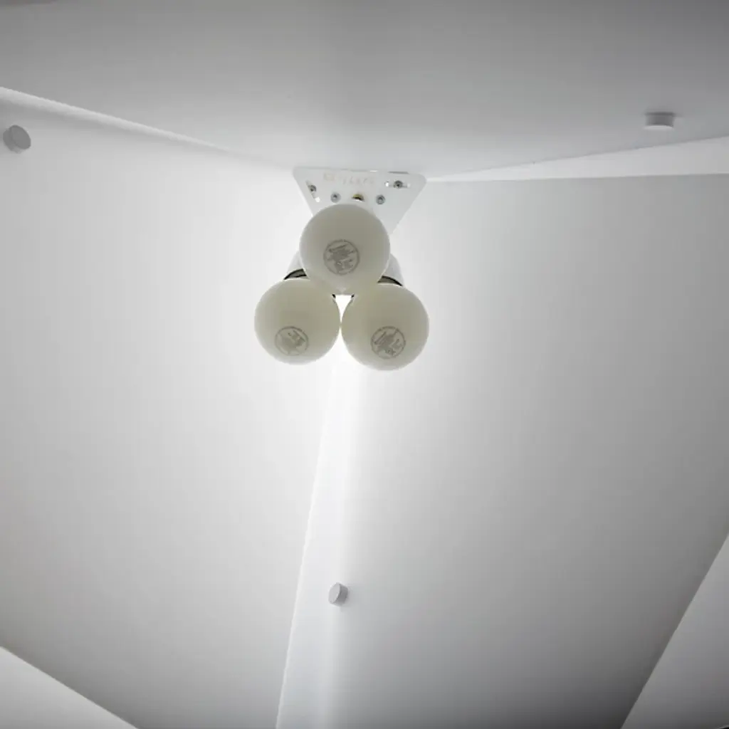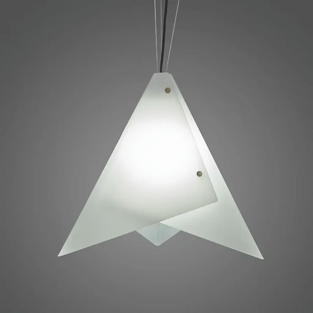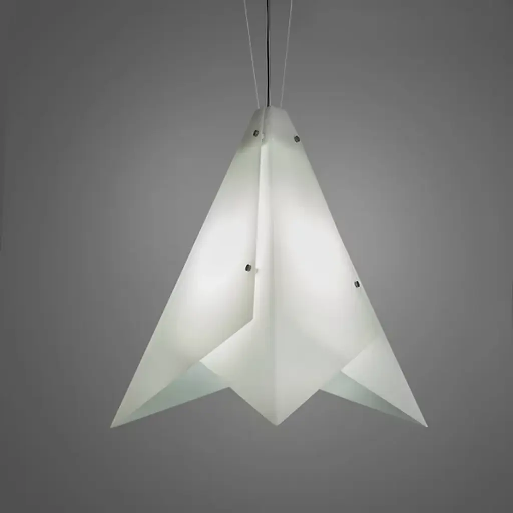 A design to unfold with your eyes. Like an intricately crafted piece of origami, the Akira 21471 Acrylic Pendant from Ultralights finds the striking balance between simplicity and complexity. This pendant's sleek, precise construction serves as a futuristic display in the contemporary home. Made from opal acrylic, the shade gets the eyes moving with the sharp angles created by its folded shapes. Arranged with a sculptural quality, the acrylic shade is secured with visually popping metal accents. The opaque shade mellows out the light of the bright LED bulbs into an alluring ambient glow. Light also fans out the sleek opening to accentuate your tables or the floor.