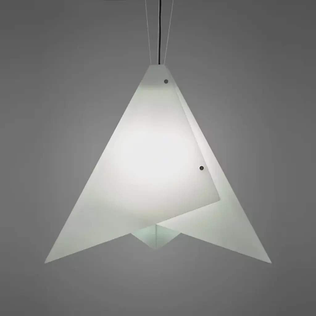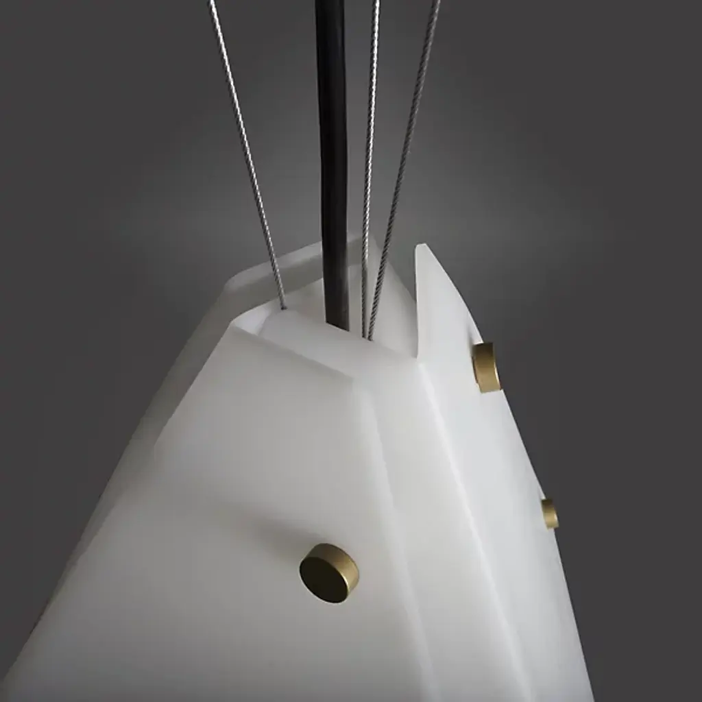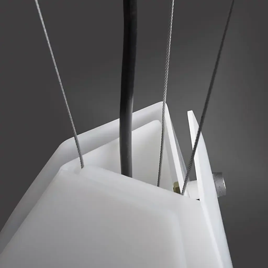 A design to unfold with your eyes. Like an intricately crafted piece of origami, the Akira 21471 Acrylic Pendant from Ultralights finds the striking balance between simplicity and complexity. This pendant's sleek, precise construction serves as a futuristic display in the contemporary home. Made from opal acrylic, the shade gets the eyes moving with the sharp angles created by its folded shapes. Arranged with a sculptural quality, the acrylic shade is secured with visually popping metal accents. The opaque shade mellows out the light of the bright LED bulbs into an alluring ambient glow. Light also fans out the sleek opening to accentuate your tables or the floor.