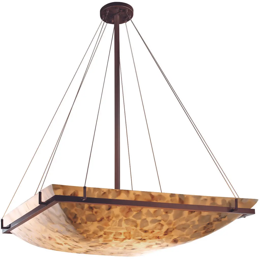 The innovative Alabaster Rocks! Collection, in which pieces of real alabaster are hand-selected and suspended in resin, offers a truly original mosaic look. When illuminated, each fixture displays its unique and varied colors, even more dramatically than solid alabaster.