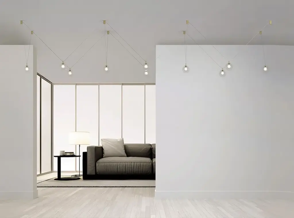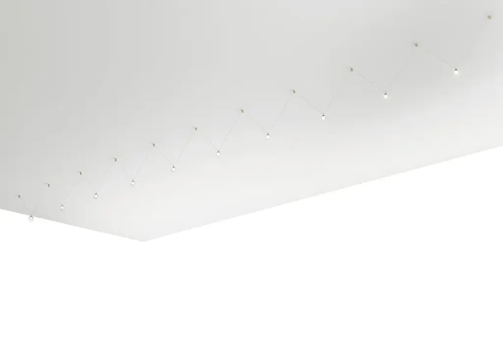 Aladino is a 10-light suspension lamp made of transparent borosilicate glass on the outside and frosted inside.The system, consisting of metal parts in brushed gold, has the ability to take power from any rose window and, through the connections, bring lighting to any light point.Technical information:- Light source: G9- Power: 10 x max 40w