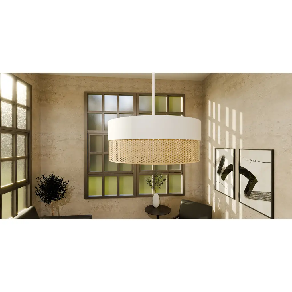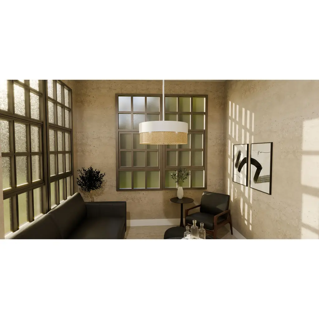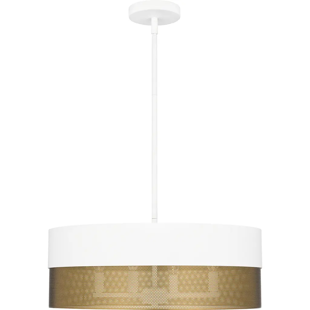 With a two-tone design and industrial styling, Alani pendant lights make a true statement in any space. Available in either matte black or matte white, the drum silhouette incorporates a perforated gold metal shade that adds a unique textured effect. With their versatile design, these oversized pendants look great over a table, in a bedroom, or in a living room area.