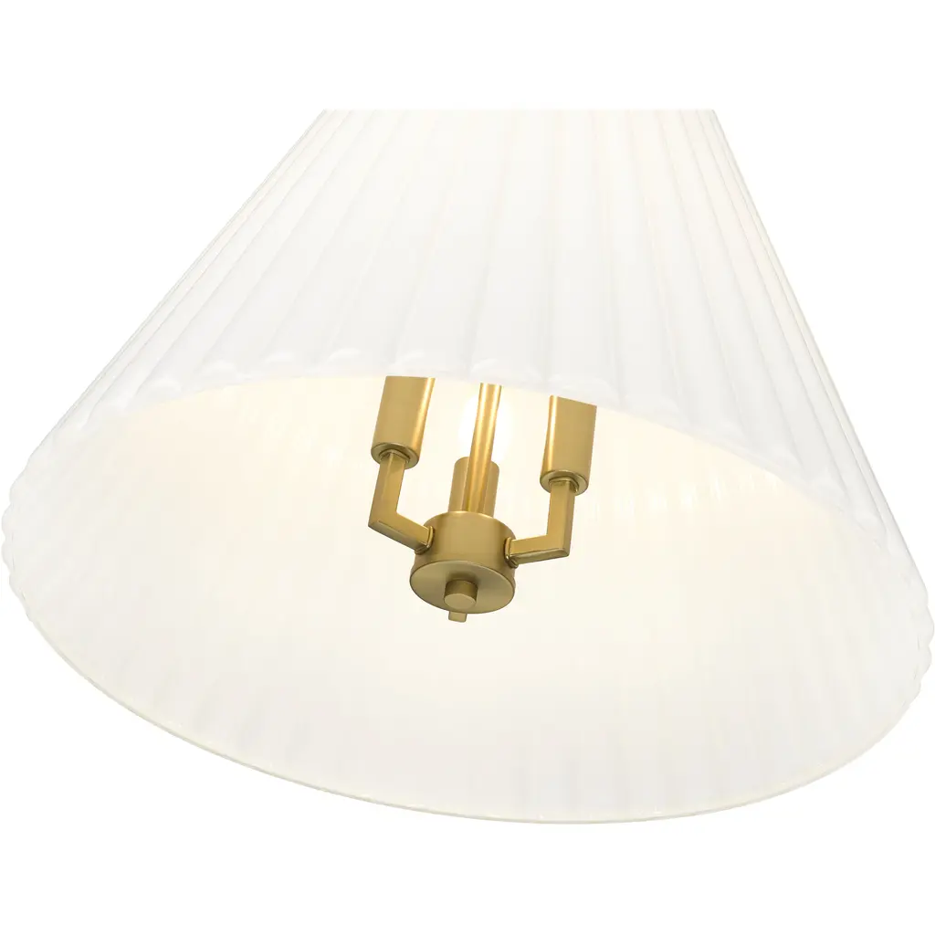 Accentuate sophisticated decor with the fresh style of a modern three-light pendant. Complete with a fluted white glass shade, it offers soothing downlighting, perfect for a kitchen or living room. A modern gold finish adds warmth and character perfect for timeless elegance.