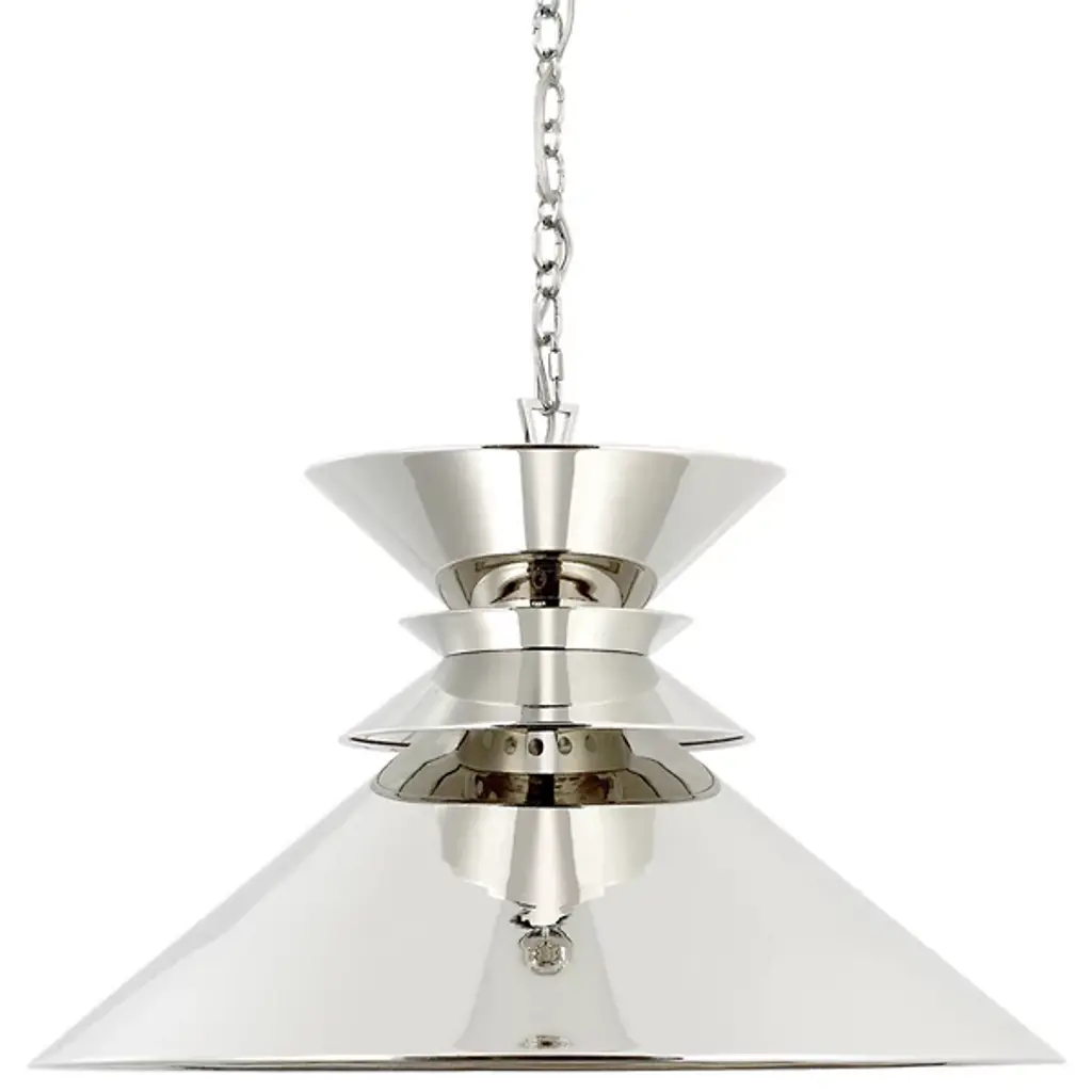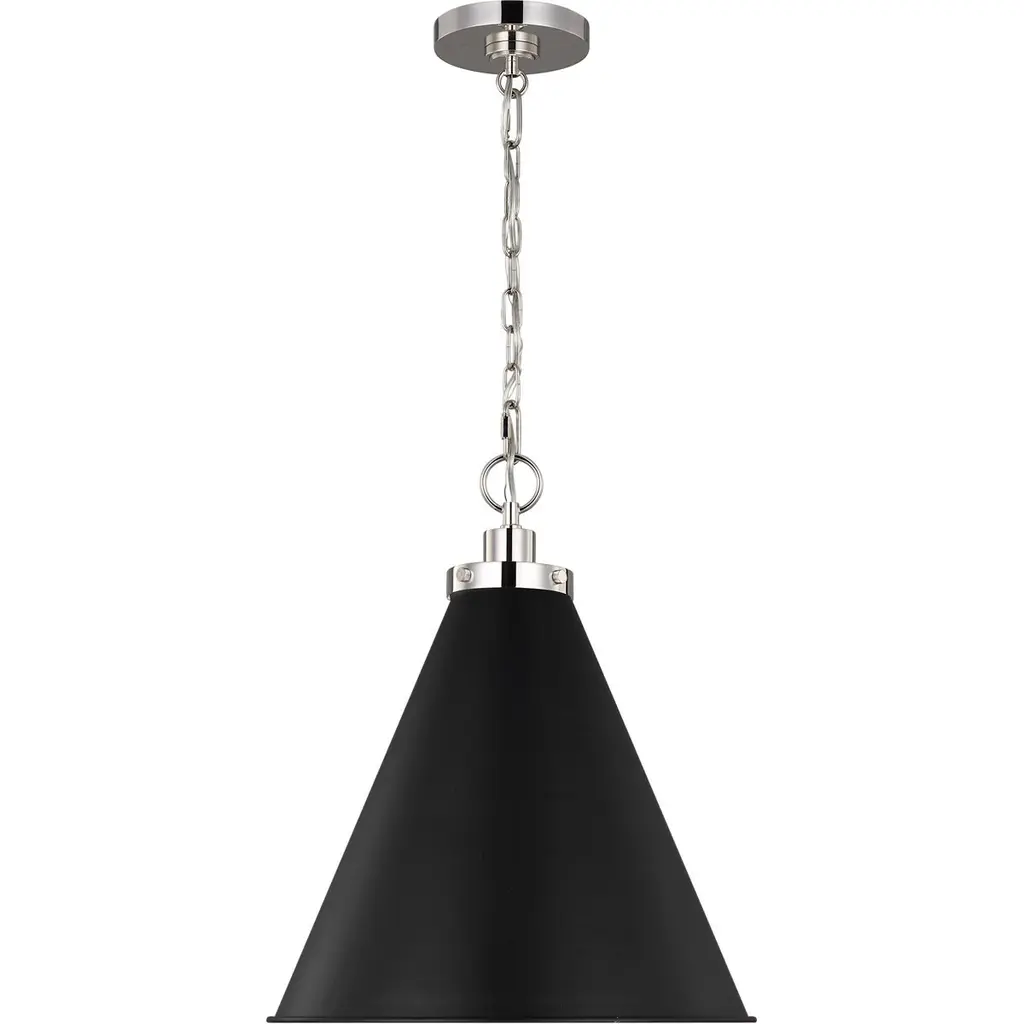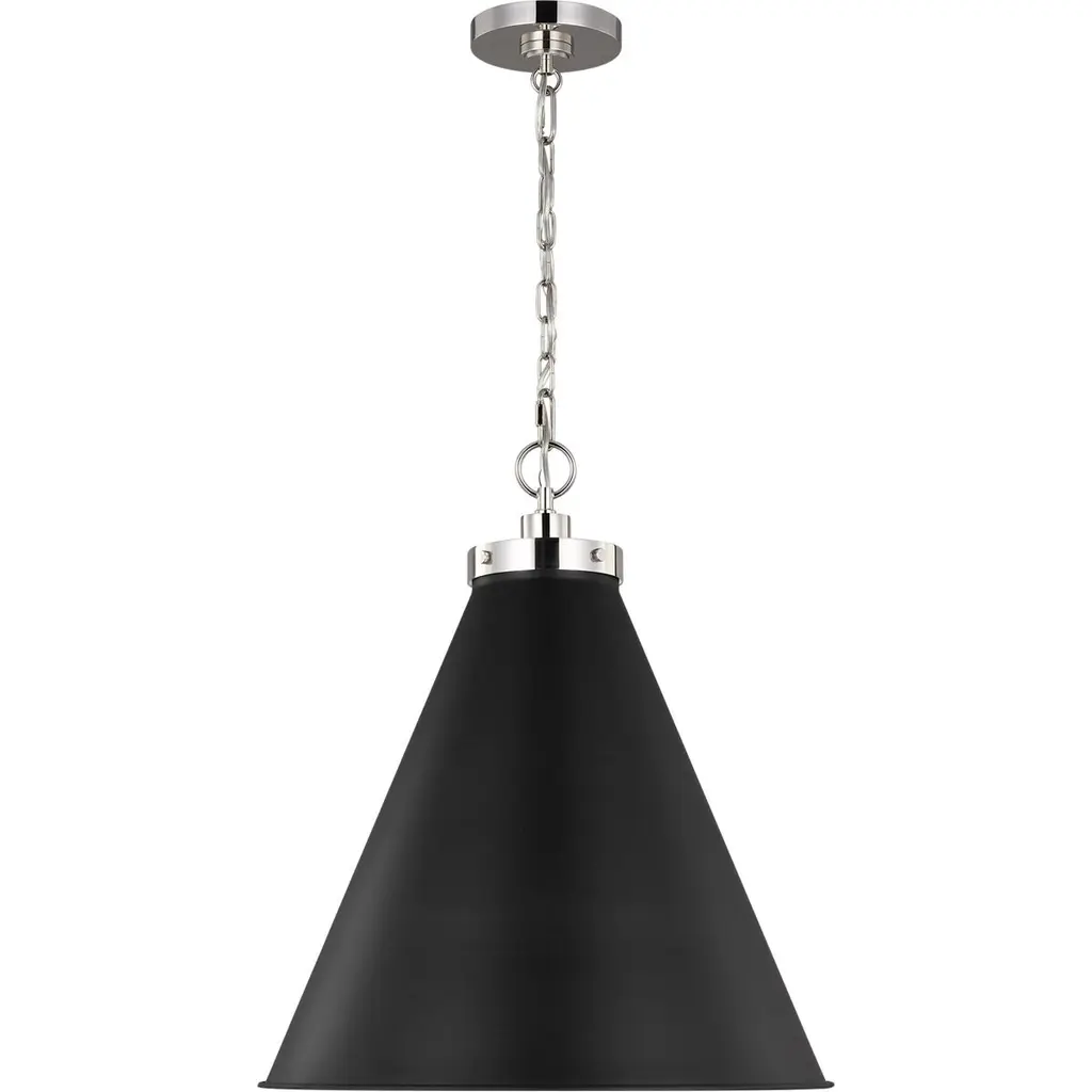 A dramatic new rendition of the classic barn light. The Alborg Large Stacked Pendant by Visual Comfort Signature, formerly known as Visual Comfort, blends sharp angles with an open shade and sleeve and collar frame to create visual interest while directing the light downward. This makes it ideally suited as task lighting over islands or sinks, while the transitional styling seamlessly combined modern aesthetics with a hint of classic appeal.