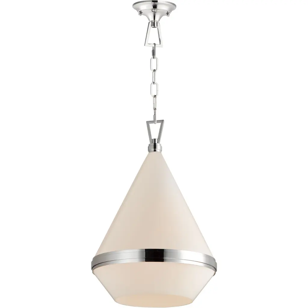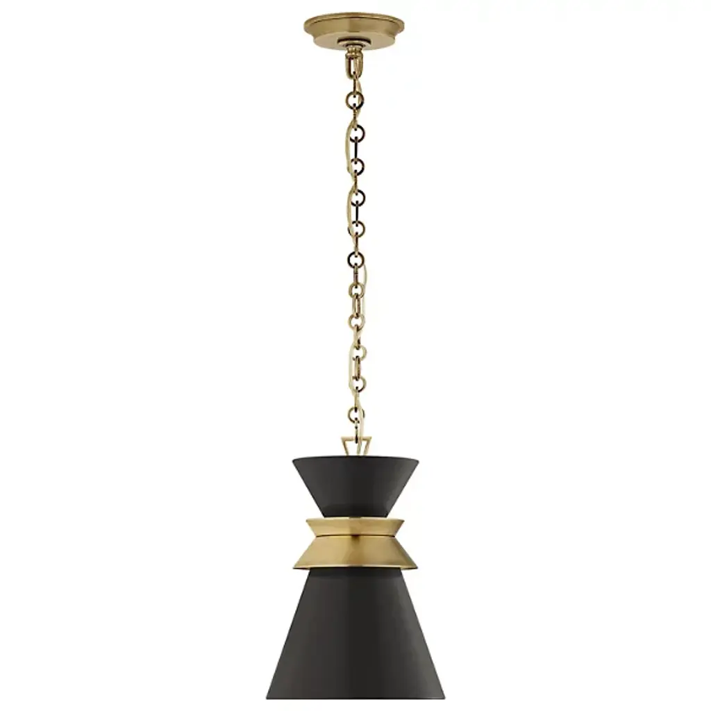 Designer duo Chapman & Myers have come together with beloved brand Visual Comfort Signature, formerly known as Visual Comfort, to present the modern Alborg Small Stacked Pendant. A contemporary black steel shade features a distinctive cone shape that contrasts strikingly against chic finishing touches of antique burnished brass. It hangs from a circular chain link and anchors to a rounded canopy in a matching finish. Generous illumination funnels down the sloped shade and onto the surface below. It’s a tremendously stylish option to brighten up an interior space.