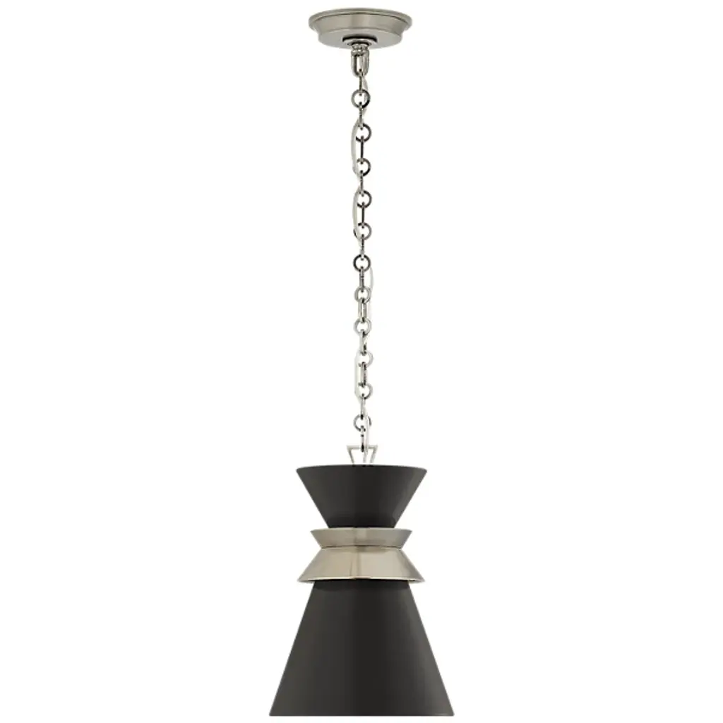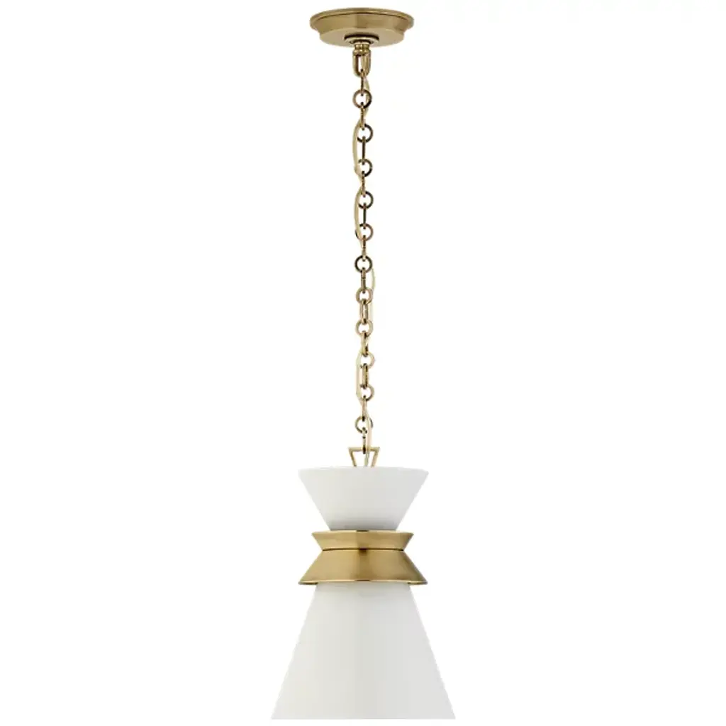 Designer duo Chapman & Myers have come together with beloved brand Visual Comfort Signature, formerly known as Visual Comfort, to present the modern Alborg Small Stacked Pendant. A contemporary black steel shade features a distinctive cone shape that contrasts strikingly against chic finishing touches of antique burnished brass. It hangs from a circular chain link and anchors to a rounded canopy in a matching finish. Generous illumination funnels down the sloped shade and onto the surface below. It’s a tremendously stylish option to brighten up an interior space.