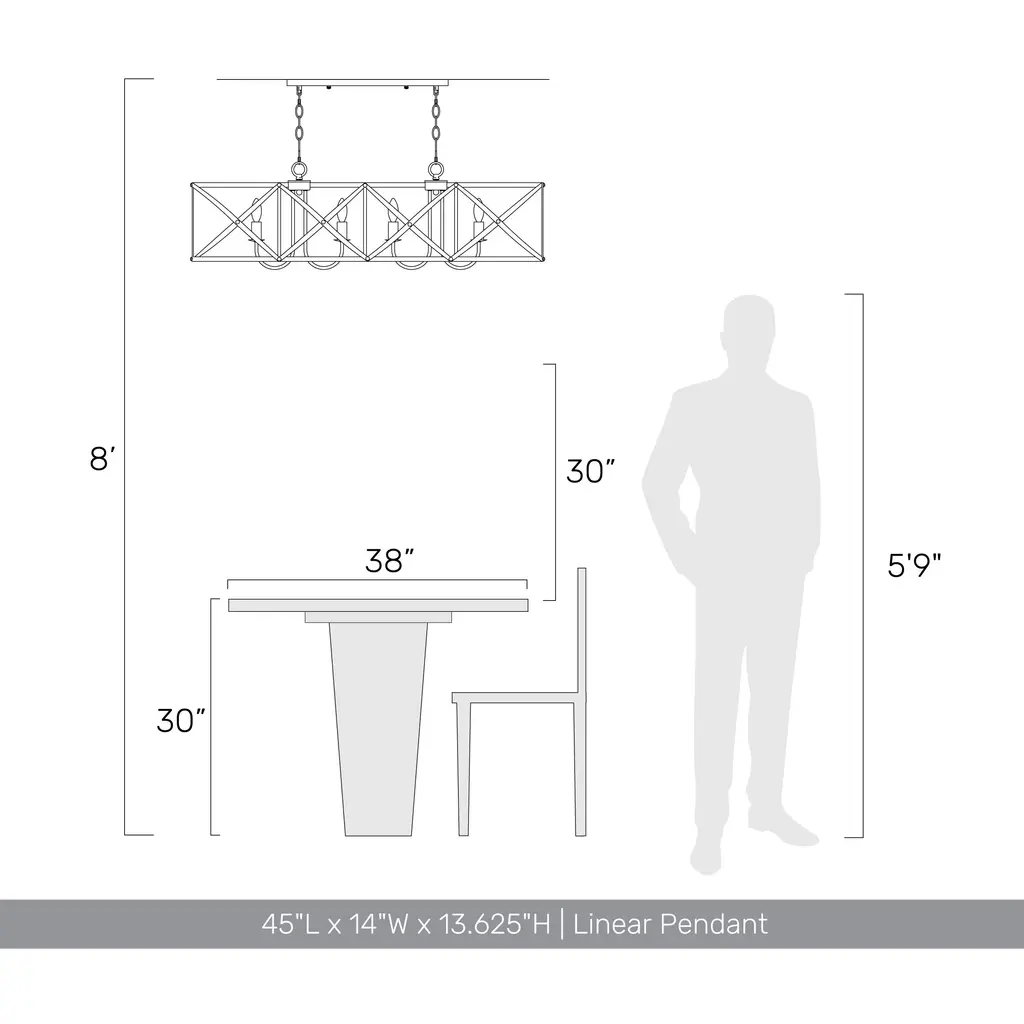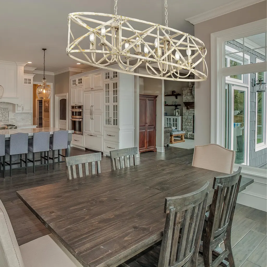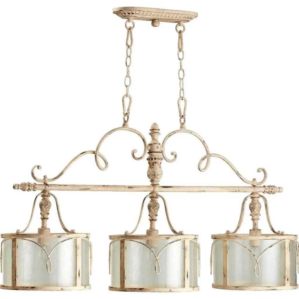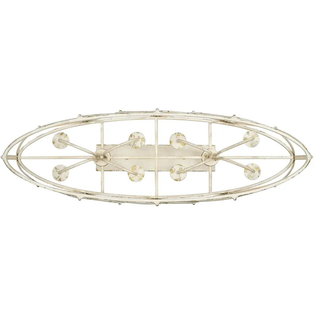 Bring traditional elegance into your home with the Golden Lighting Alcott 8-light Island Light. Featuring an open-cage design, it creates a welcoming atmosphere in your space.This fixture comes in a rich Antique Ivory finish that evokes the timeless charm of a treasured European heirloom. Each piece is carefully hand-painted, adorned with gold leafing, and highlights stunning craftsmanship.Ideal for dry locations like kitchens, dining areas, and hallways, the adjustable height (Min: 16.625"- Max: 90.25") and sloped-ceiling compatibility ensure it fits perfectly anywhere you desire.Overall Dimensions: 45"W x 13.63"H x 14"D. Requires 8 E12 Candelabra base bulbs (not included), with a max of 60 watts per bulb.Elevate your home with the inviting warmth and artisanal quality of this exquisite fixture.