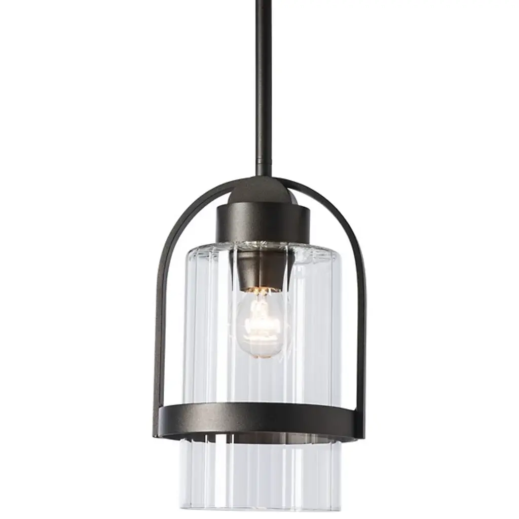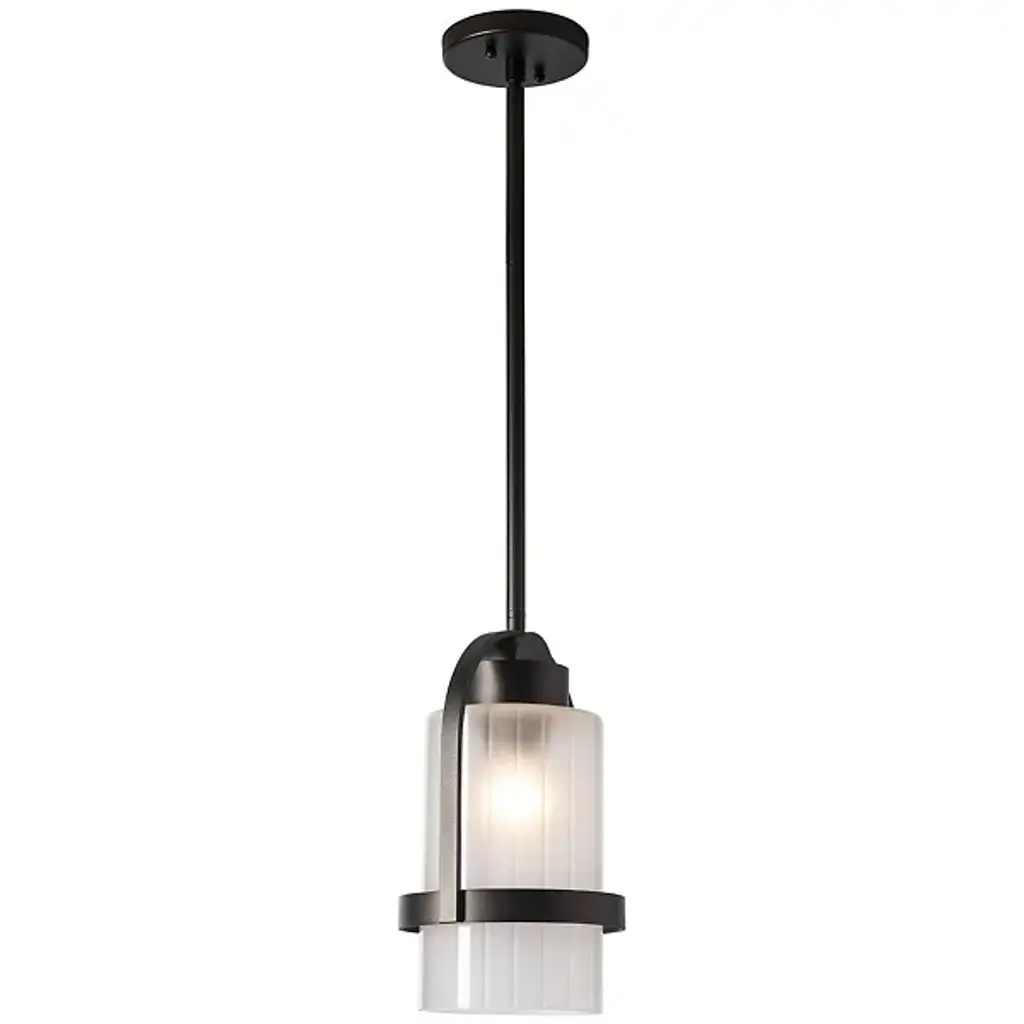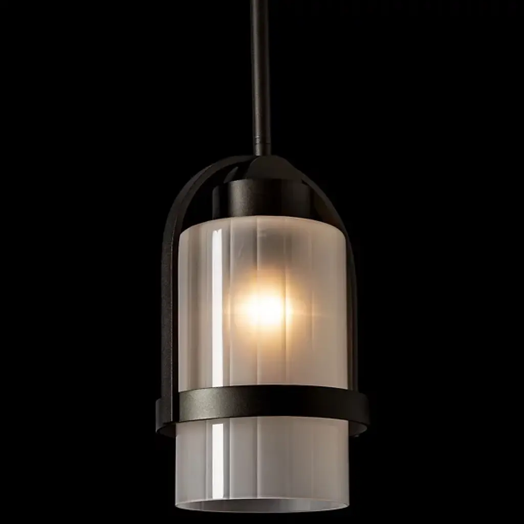 A clean and crisp lighting design for modern outdoor spaces. The star of the Alcove Outdoor Mini Pendant by Hubbardton Forge is its cylindrical glass shade, with a deep fluted texture that both emphasizes the shade’s verticality and enhances the overall visual appeal of the entire pendant. The refined aluminum frame is crafted by hand, and it is coated in one of several coastal finishes for superior endurance in tall, covered entries or along a porch.