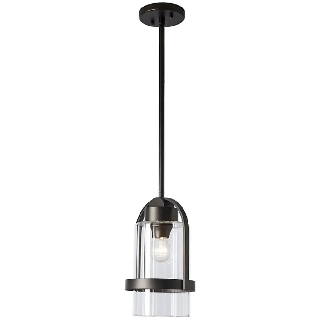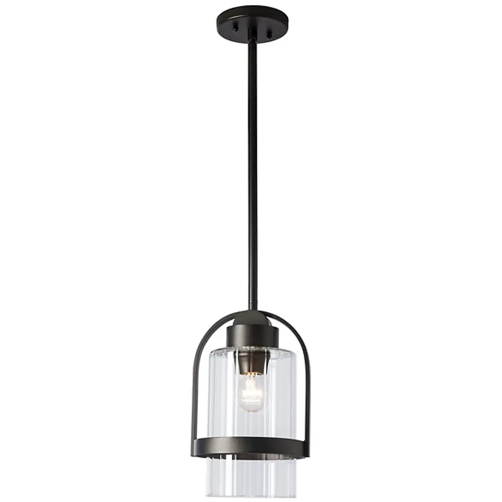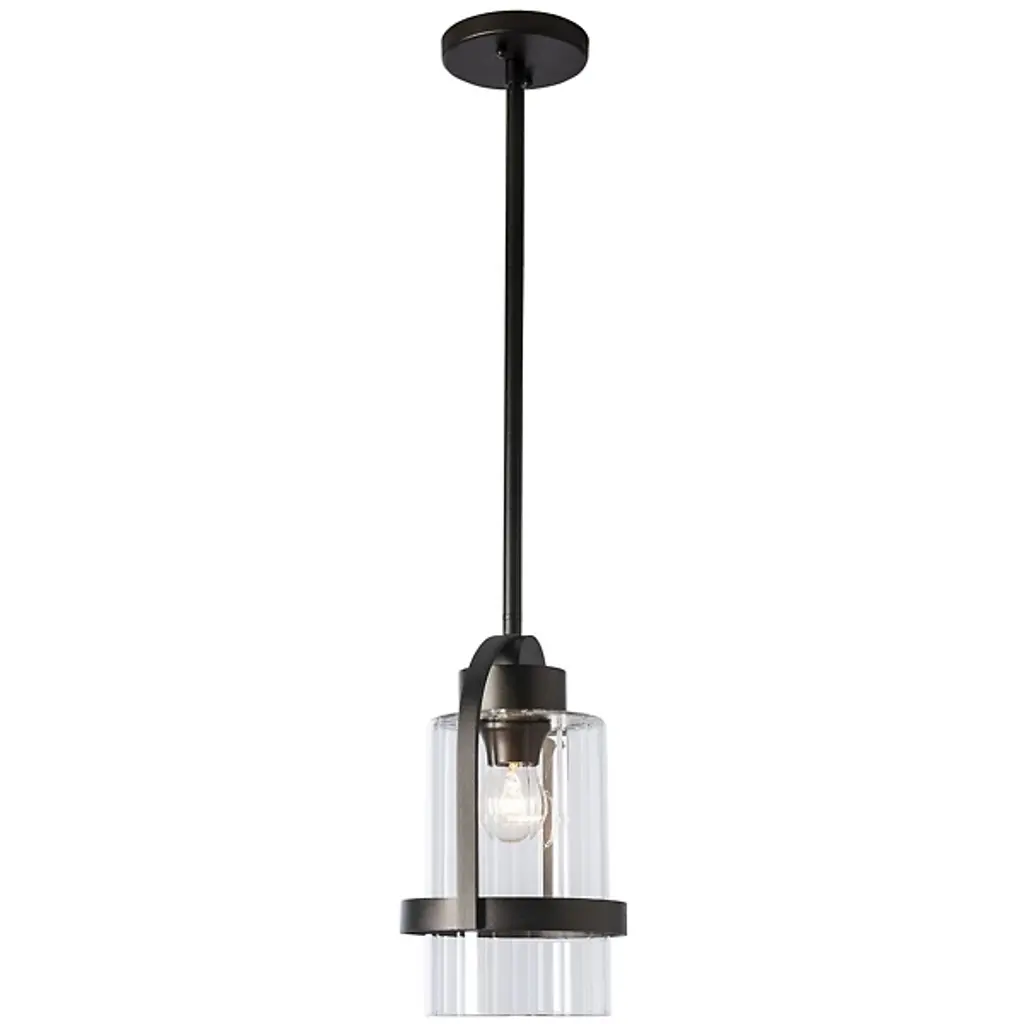 A clean and crisp lighting design for modern outdoor spaces. The star of the Alcove Outdoor Mini Pendant by Hubbardton Forge is its cylindrical glass shade, with a deep fluted texture that both emphasizes the shade’s verticality and enhances the overall visual appeal of the entire pendant. The refined aluminum frame is crafted by hand, and it is coated in one of several coastal finishes for superior endurance in tall, covered entries or along a porch.