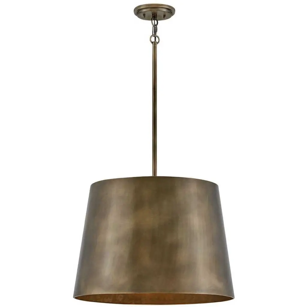 Simple lines and a bold silhouette make the Alder Outdoor Pendant from Hinkley Lighting a stunning addition to modern spaces. Crafted from durable cast aluminum, a drum-shaped shade drops from a thin stem to hover at the ideal height. Its lamping is concealed behind the opaque shade, sending its light upward and downward to create an atmospheric effect. Its finish lends a rustic quality that adds depth to its simplistic aesthetic while easily complementing a wide range of home exterior styles.