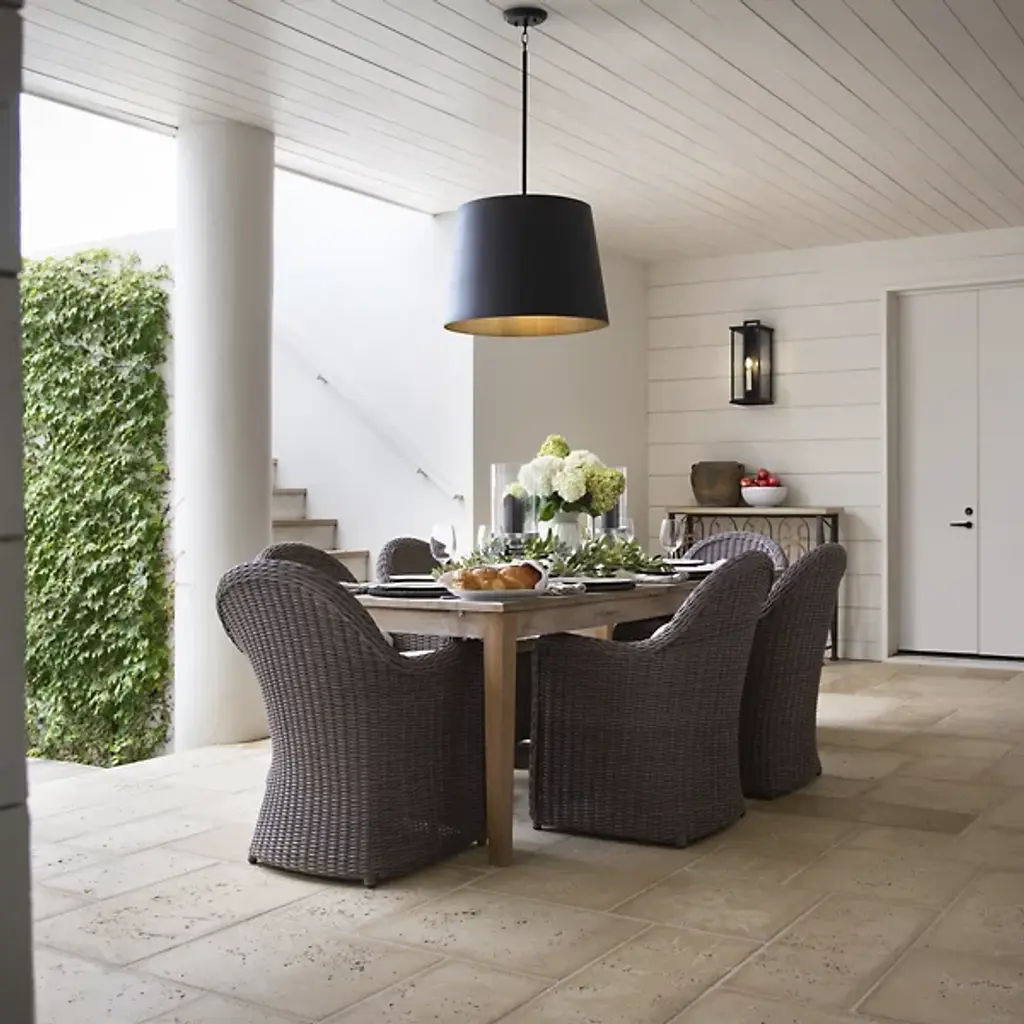 Simple lines and a bold silhouette make the Alder Outdoor Pendant from Hinkley Lighting a stunning addition to modern spaces. Crafted from durable cast aluminum, a drum-shaped shade drops from a thin stem to hover at the ideal height. Its lamping is concealed behind the opaque shade, sending its light upward and downward to create an atmospheric effect. Its finish lends a rustic quality that adds depth to its simplistic aesthetic while easily complementing a wide range of home exterior styles.