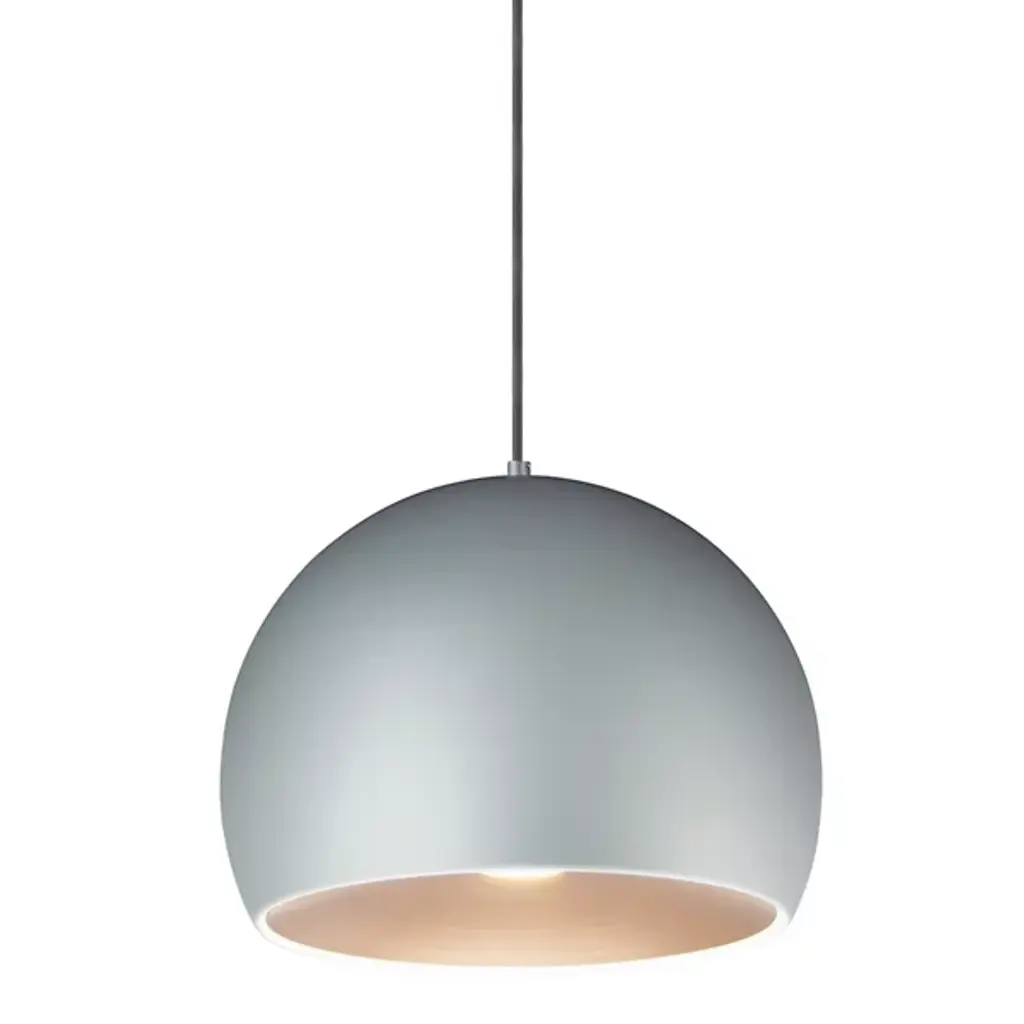 Add an elegant accent to your inside spaces with the sleek surfaces of the Aldus LED Pendant by Huxe. Starting with a smooth disc ceiling mount, it sends down a single cable to a rounded, two-tone metal shade that mellows LED lamping with an acrylic diffuser. This smooth, seamless structure blunts direct brightness from the sides and above, transforming it into a warm wash of ambiance that washes out around the fixture.
