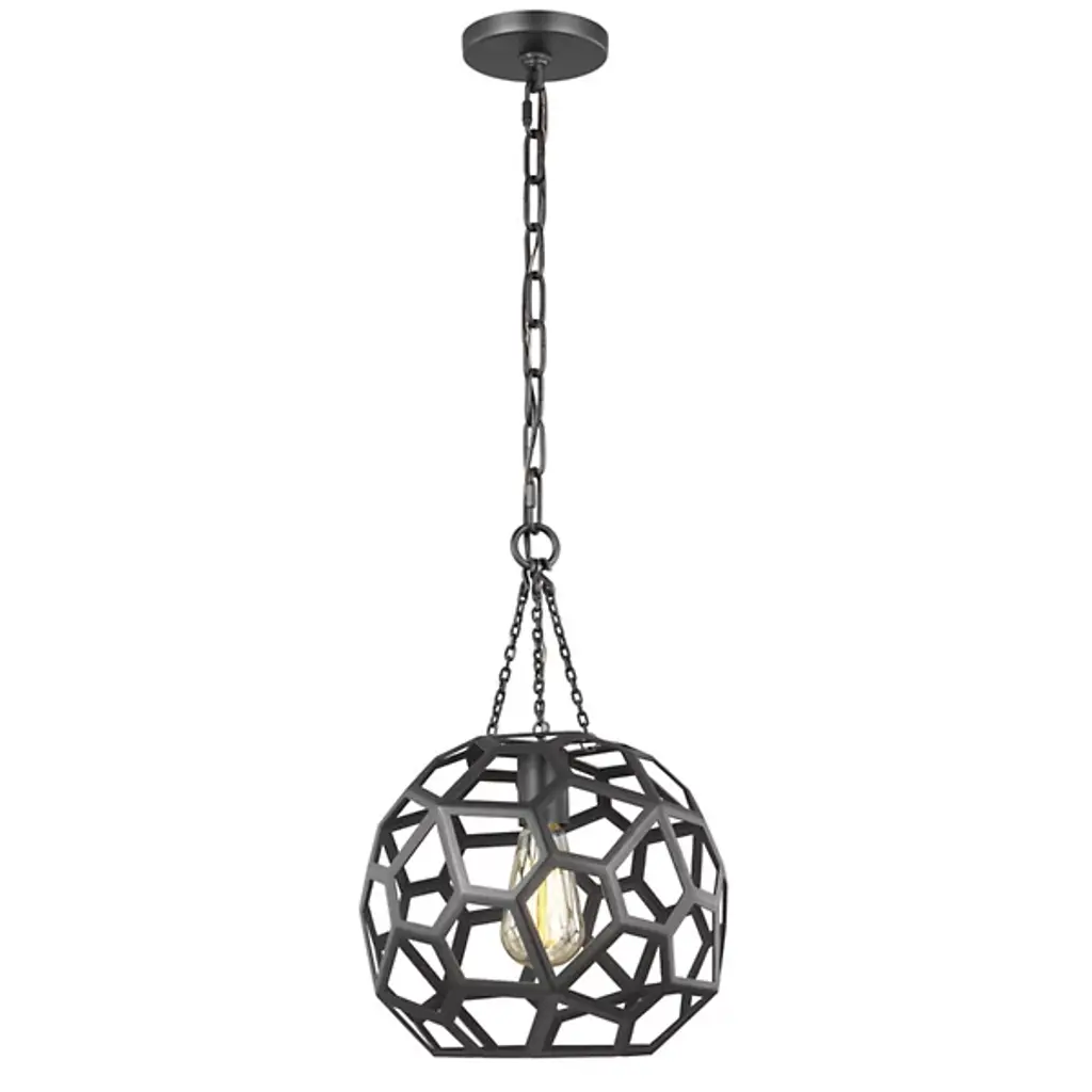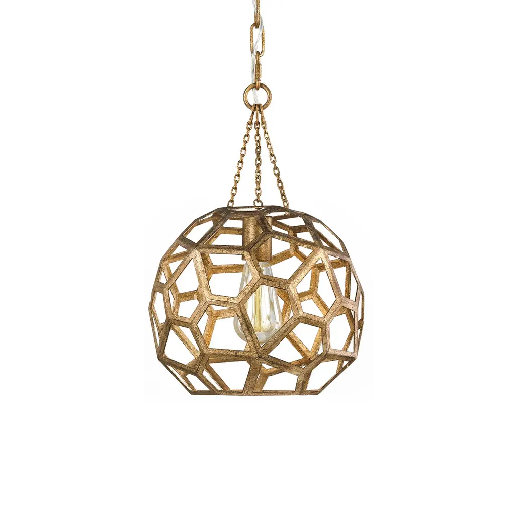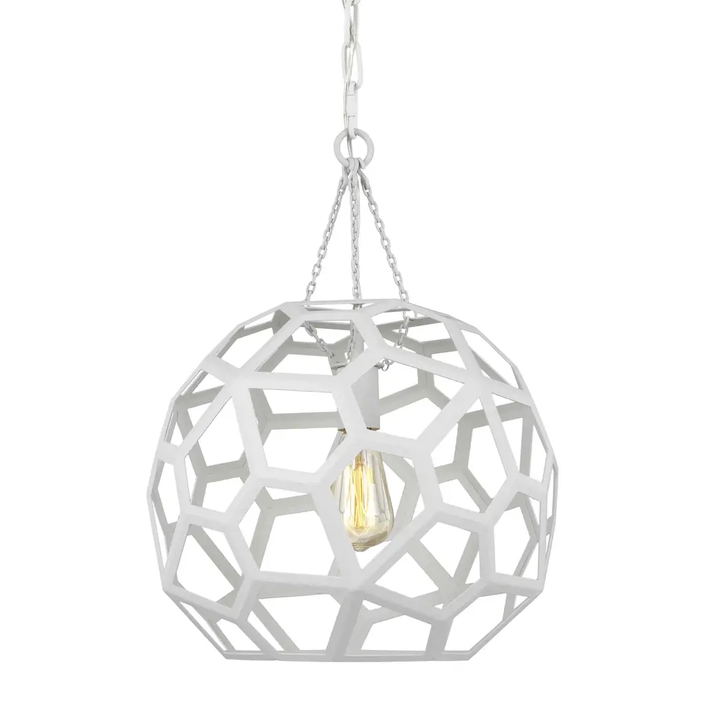 The Alexa Hampton Feccetta Pendant Light from Visual Comfort & Co adds sophisticated geometric beauty to any home interior. Its circular frame, crafted of hexagonal cut-outs, radiates warm, ambient light in a variety of finishes to suit all decors. This eye-catching luminary is LED compatible and damp-rated, making it ideal for adding a touch of mid-century modern elegance to your kitchen island, dining room table, or bathroom. Highlights