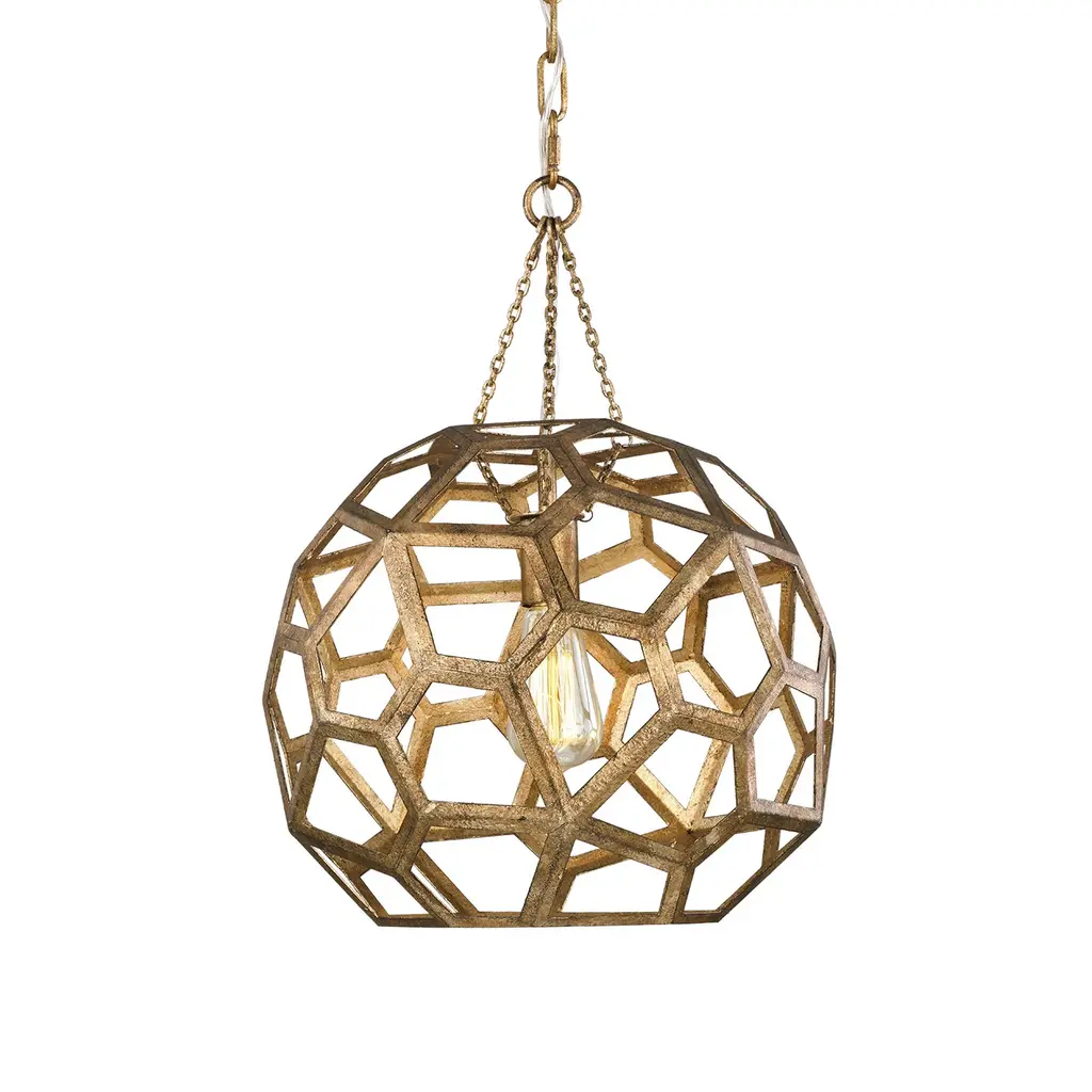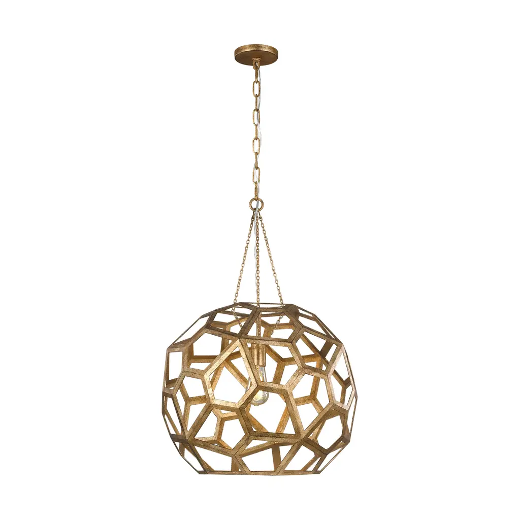 The Alexa Hampton Feccetta Pendant Light from Visual Comfort & Co adds sophisticated geometric beauty to any home interior. Its circular frame, crafted of hexagonal cut-outs, radiates warm, ambient light in a variety of finishes to suit all decors. This eye-catching luminary is LED compatible and damp-rated, making it ideal for adding a touch of mid-century modern elegance to your kitchen island, dining room table, or bathroom. Highlights