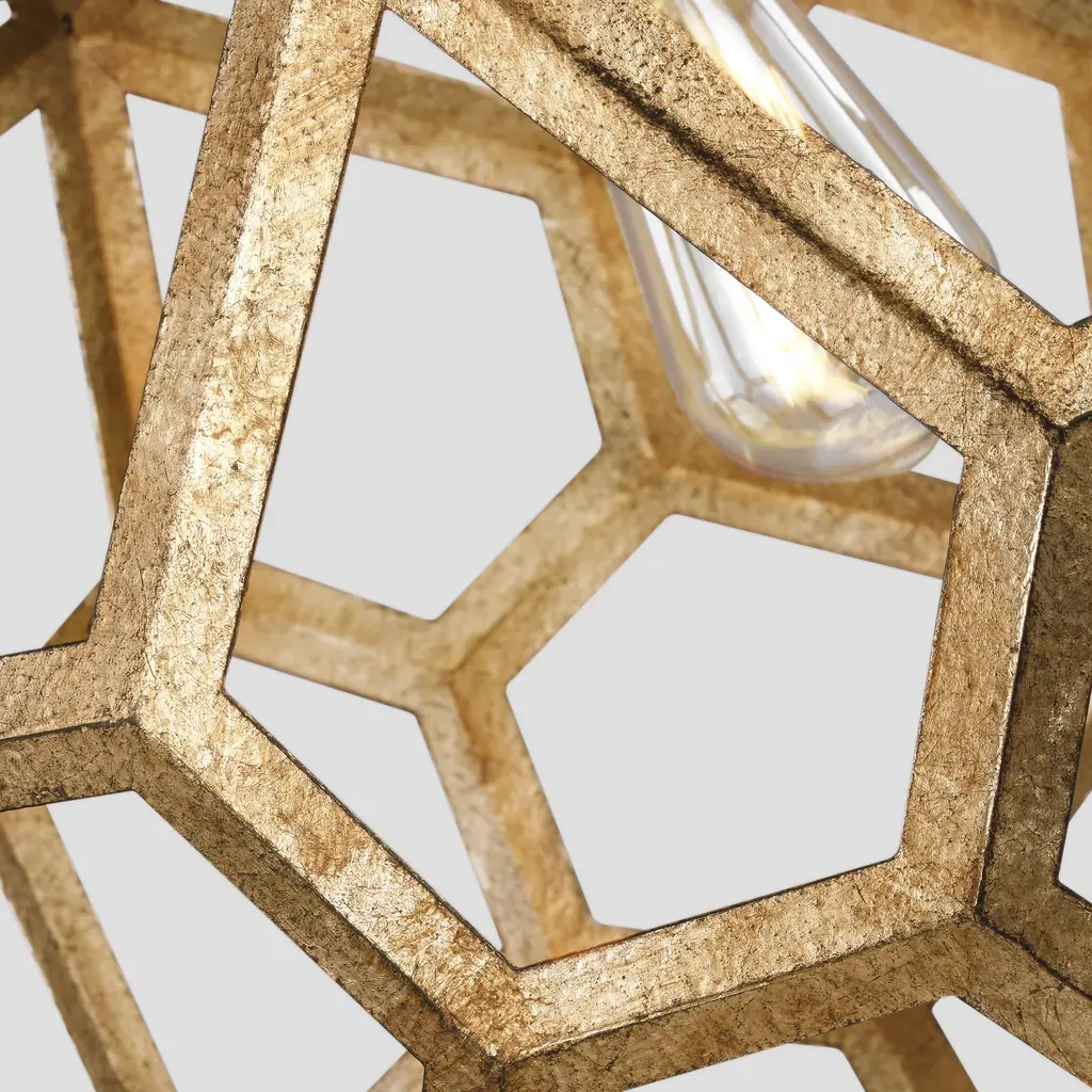 The Alexa Hampton Feccetta Pendant Light from Visual Comfort & Co adds sophisticated geometric beauty to any home interior. Its circular frame, crafted of hexagonal cut-outs, radiates warm, ambient light in a variety of finishes to suit all decors. This eye-catching luminary is LED compatible and damp-rated, making it ideal for adding a touch of mid-century modern elegance to your kitchen island, dining room table, or bathroom. Highlights
