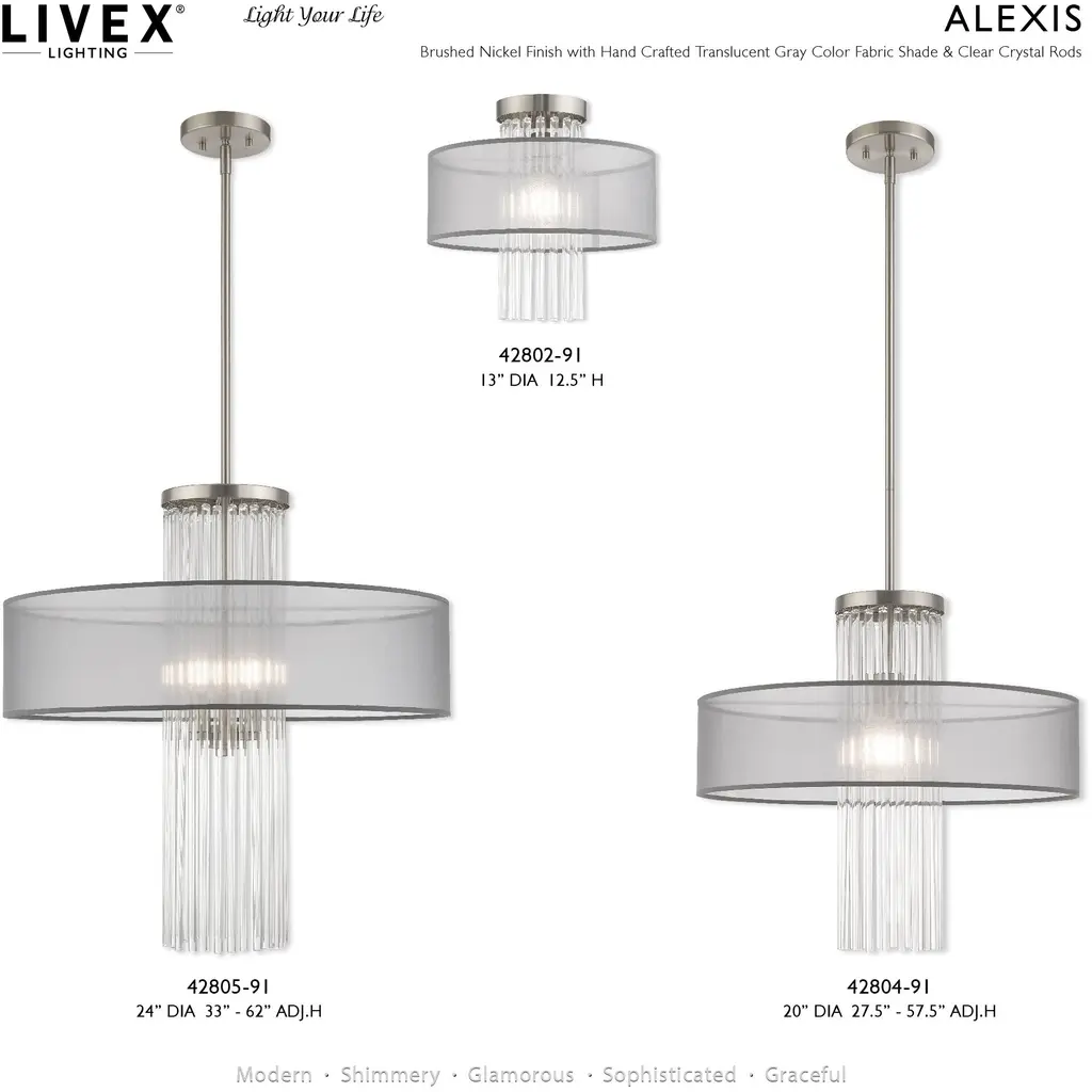Alexis 1 Light 20 Inch Brushed Nickel Pendant Chandelier Ceiling Light