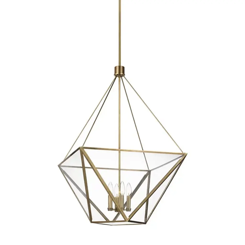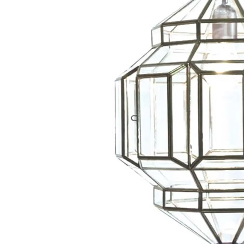 These glass lanterns are made in a generations-old workshop in Granada, Spain. Each pendant light is hand forged, and reflects the influence of Moorish design that can be observed throughout the region.These lanterns, with their multitude of diamond-shaped panes (‘rombus’ is derived from the Spanish word for diamond), carry the Moorish spirit of the Spanish city in which they are made, translating it into a modernist silhouette.Dimensions:4 sockets21” Ø x 39” h53cm Ø x 100cm hLampingE26 bulb, 60W maxFully compatible dimmingCertificationsUL, cUL listed (120V) 240V available upon request.Mountinguniversal ceiling mount; hardwired.Suspension6′ link chain (Standard)Metal finishBrass Patina, Black Satin, Silver Patina